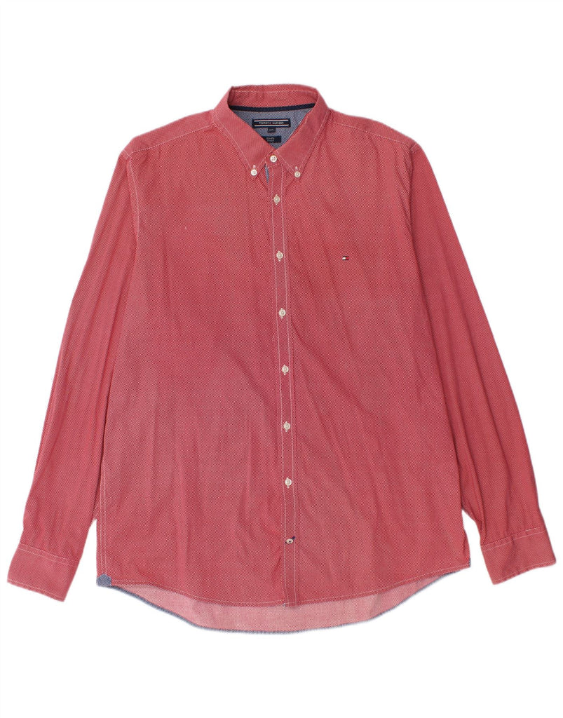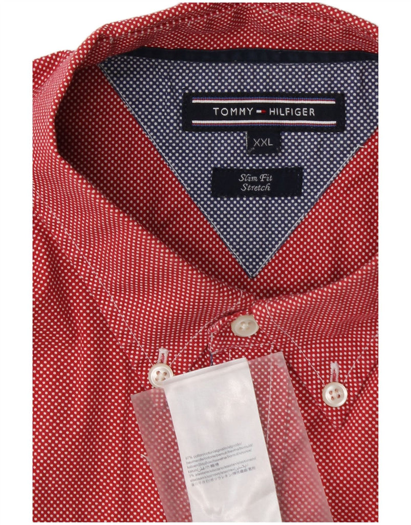 TOMMY HILFIGER Мужская рубашка приталенного кроя стрейч 2XL из хлопка в красные пятна