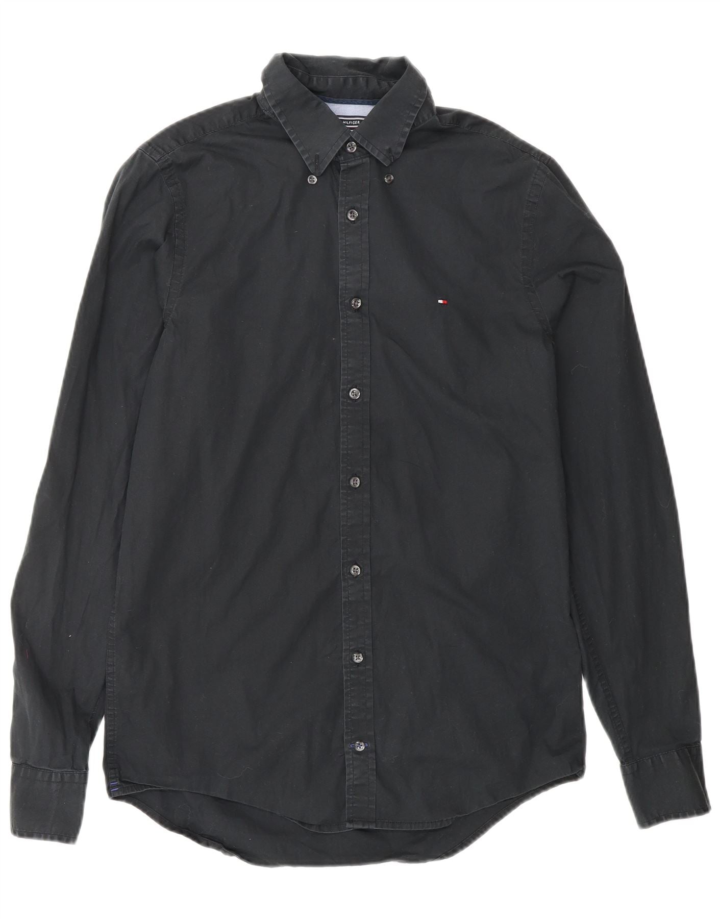 TOMMY HILFIGER Мужская рубашка приталенного кроя стрейч, маленький черный хлопок