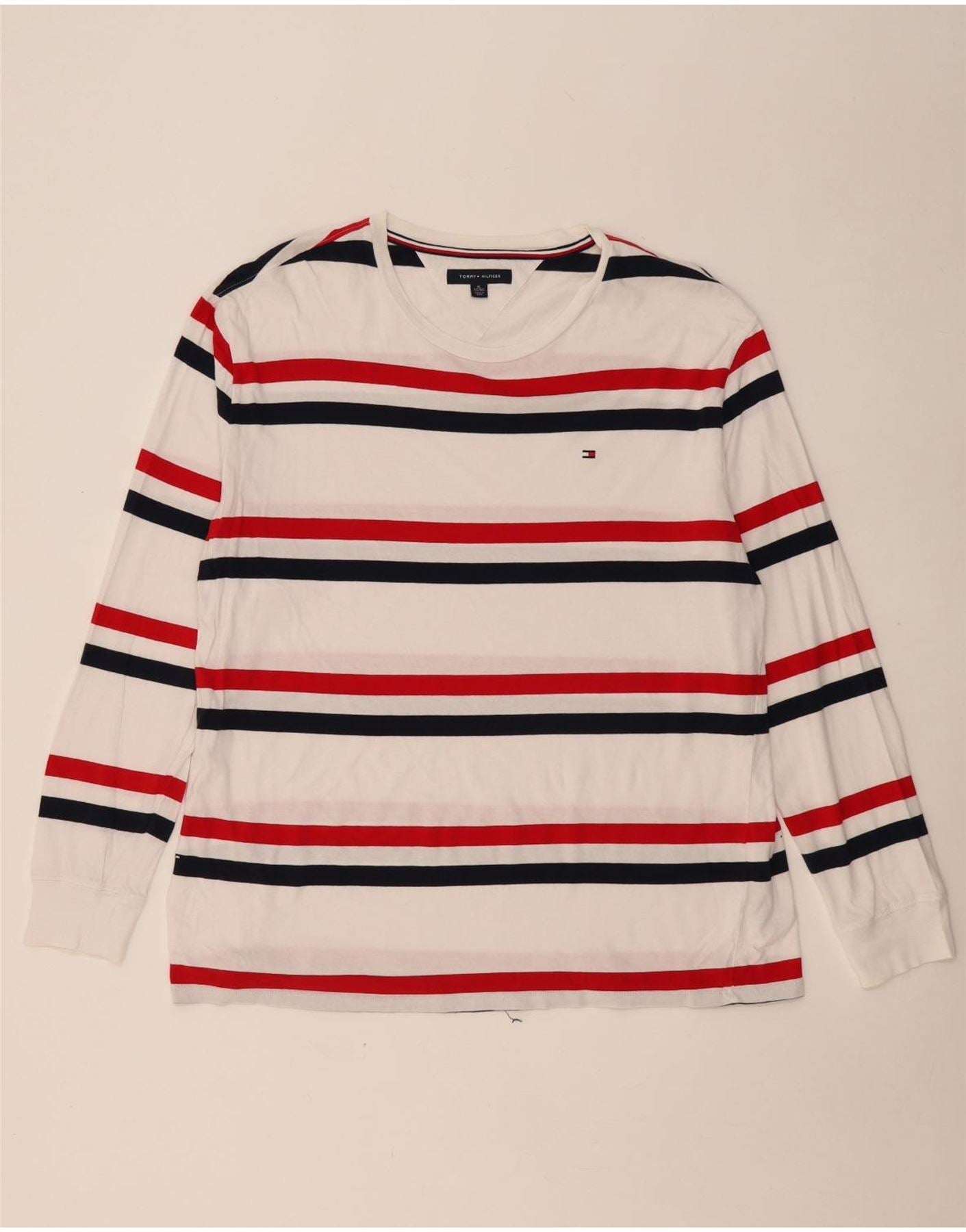 TOMMY HILFIGER Мужской топ с длинным рукавом XL из хлопка в белую полоску