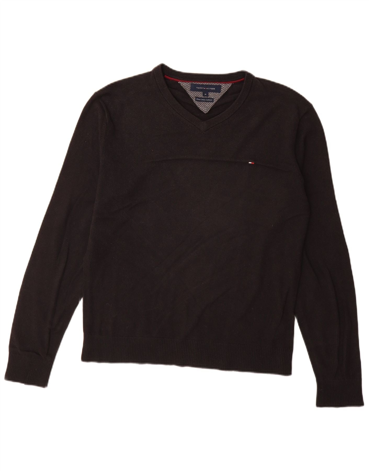 Home > Томми Хилфигер > Мужской > Джемперы > Tommy Hilfiger Мужской джемпер с v-образным вырезом, средний черный хлопковый свитер