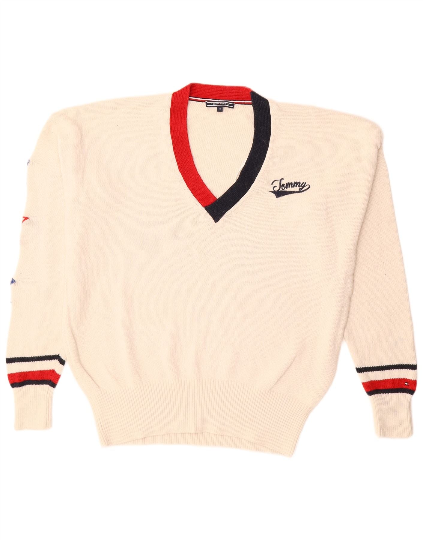 Home > Томми Хилфигер > Мужской > Джемперы > Мужской джемпер с v-образным вырезом Tommy Hilfiger, средний хлопковый джемпер белого цвета