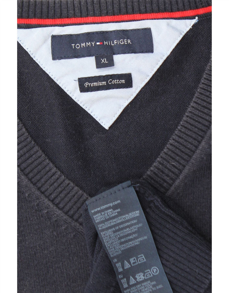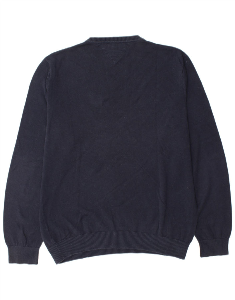 TOMMY HILFIGER Mens V-Neck Jumper Sweater XL Navy Blue Cotton