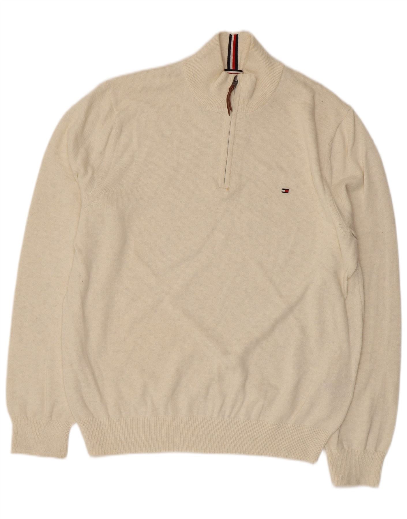 Home > Томми Хилфигер > Мужской > Джемперы > Мужской джемпер с воротником на молнии TOMMY HILFIGER, большой хлопковый свитер белого цвета