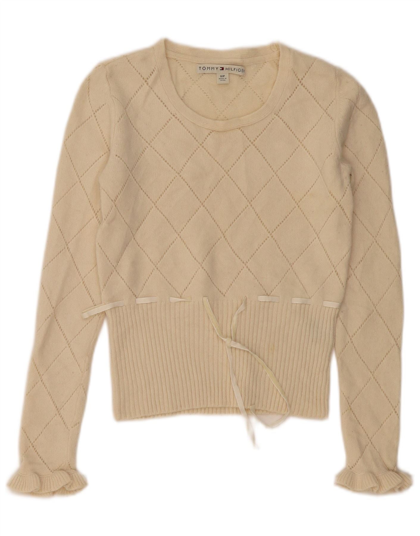 TOMMY HILFIGER Womens Boat Neck Jumper Sweater UK 10 Small Off White