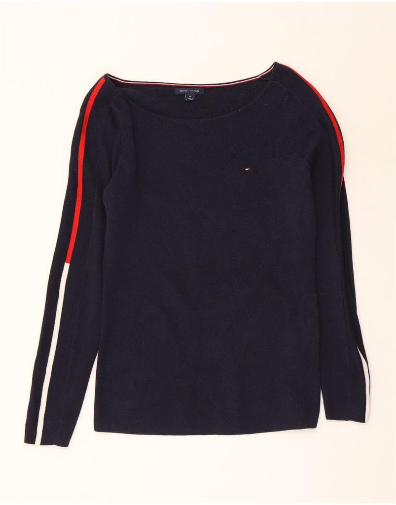 TOMMY HILFIGER Womens Boat Neck Jumper Sweater UK 12 Medium Navy Blue