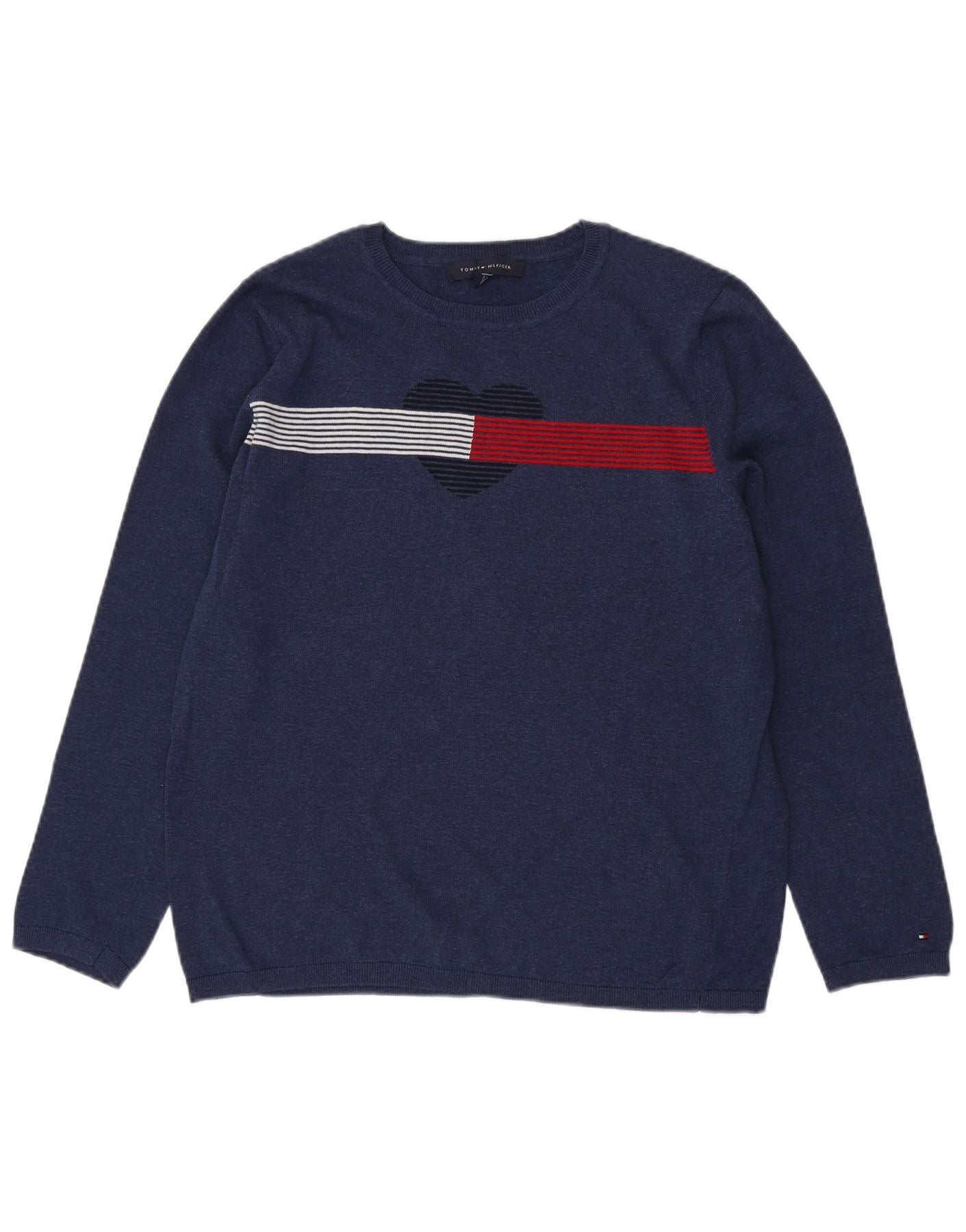 TOMMY HILFIGER Womens Crew Neck Jumper Sweater UK 16 Large Navy Blue
