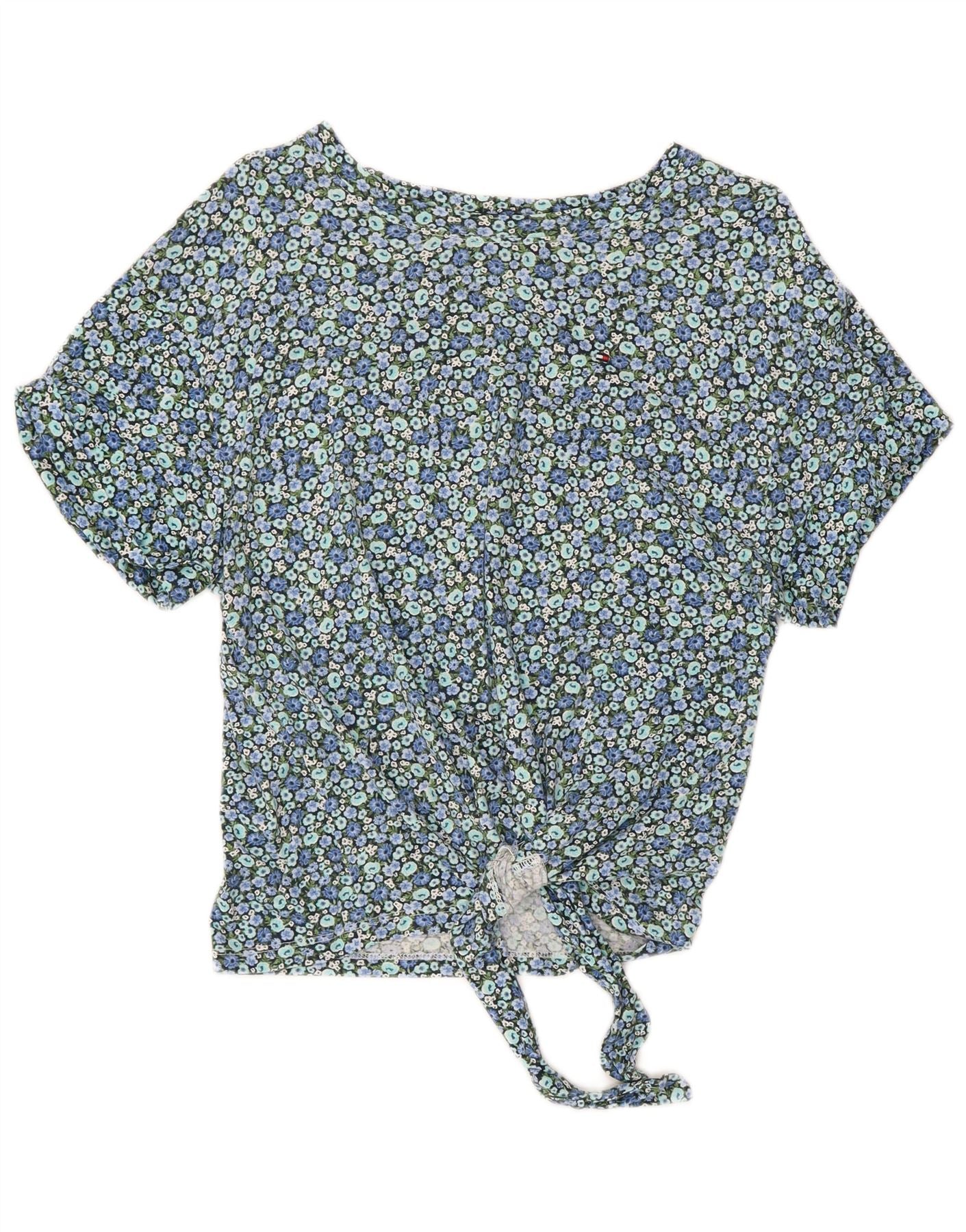 TOMMY HILFIGER Женская укороченная блузка Top UK 10, маленький синий цветочный хлопок