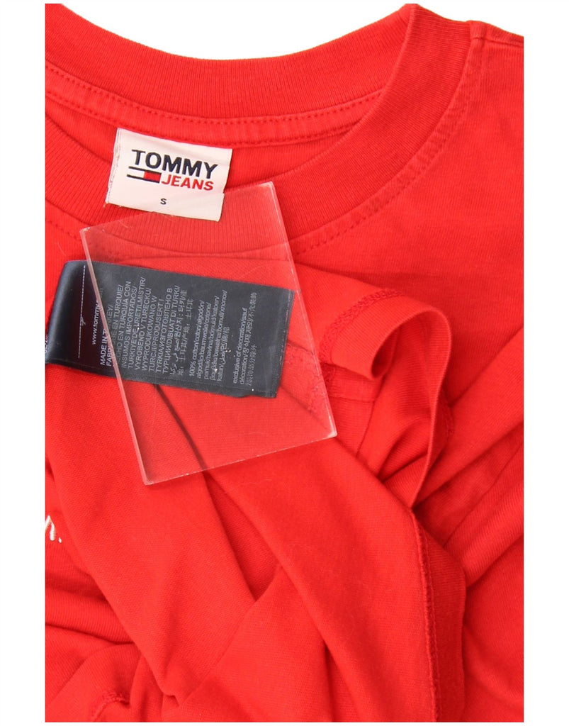 TOMMY HILFIGER Womens Crop Graphic T-Shirt Top UK 10 Small Red Cotton