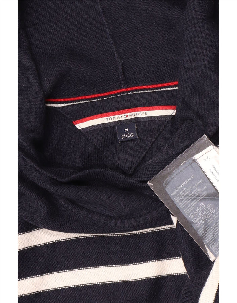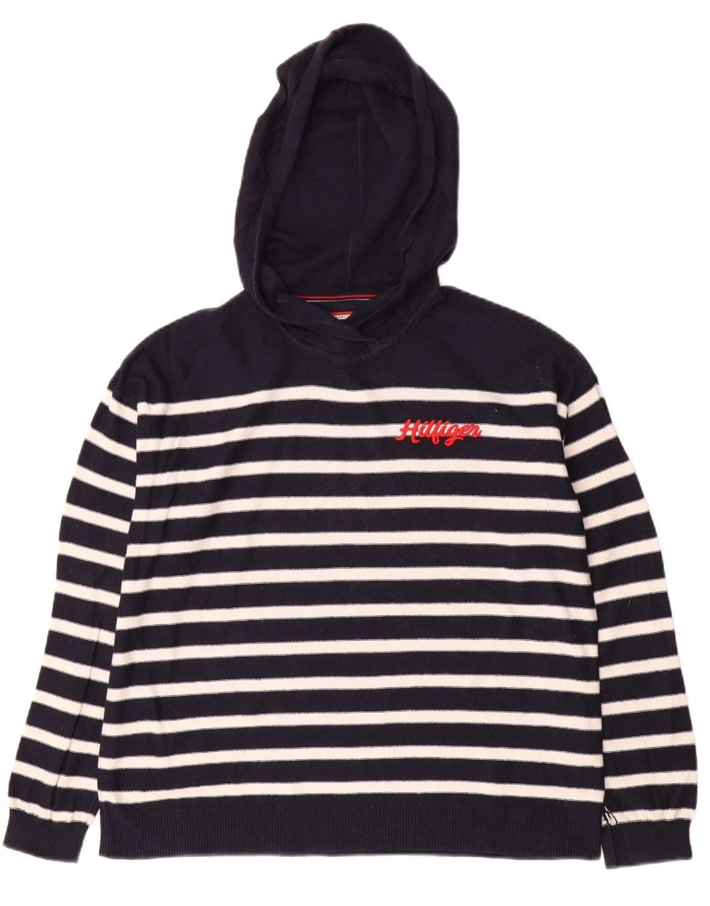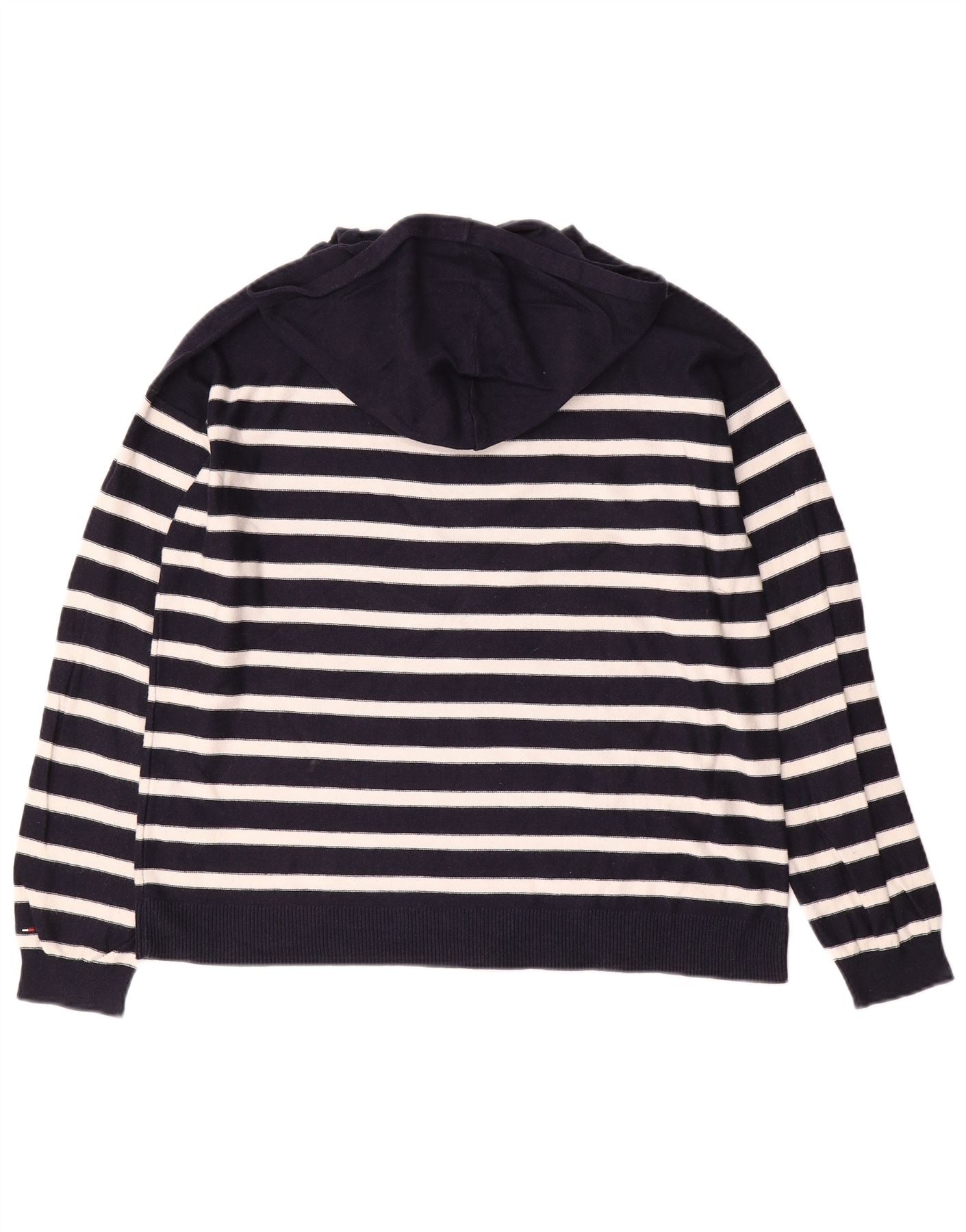 TOMMY HILFIGER Женский свитер с капюшоном UK 14 Средний Темно-Синий В Полоску