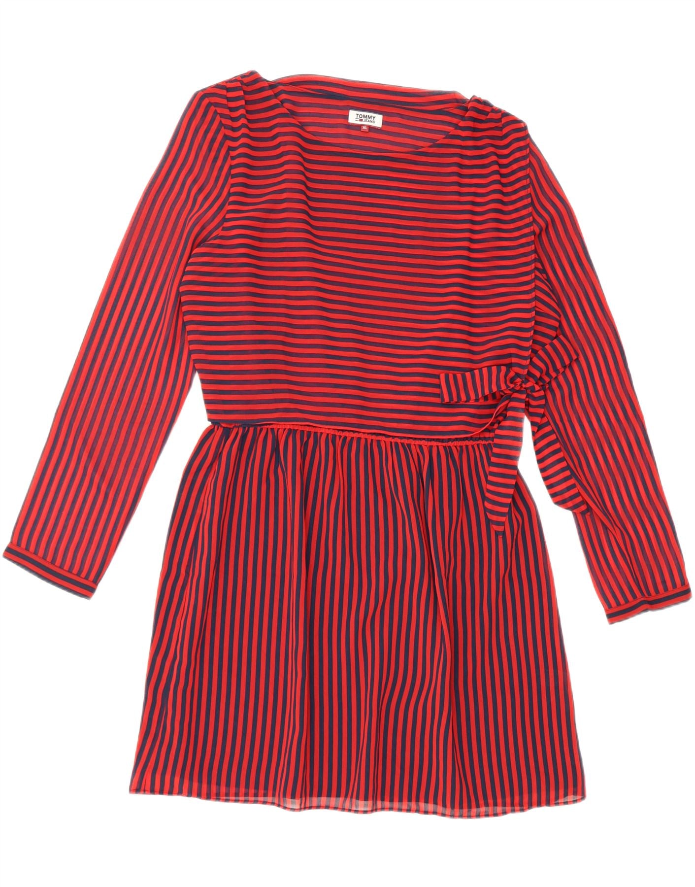 TOMMY HILFIGER Женское платье трапециевидного силуэта с длинными рукавами UK 18 XL в красную полоску