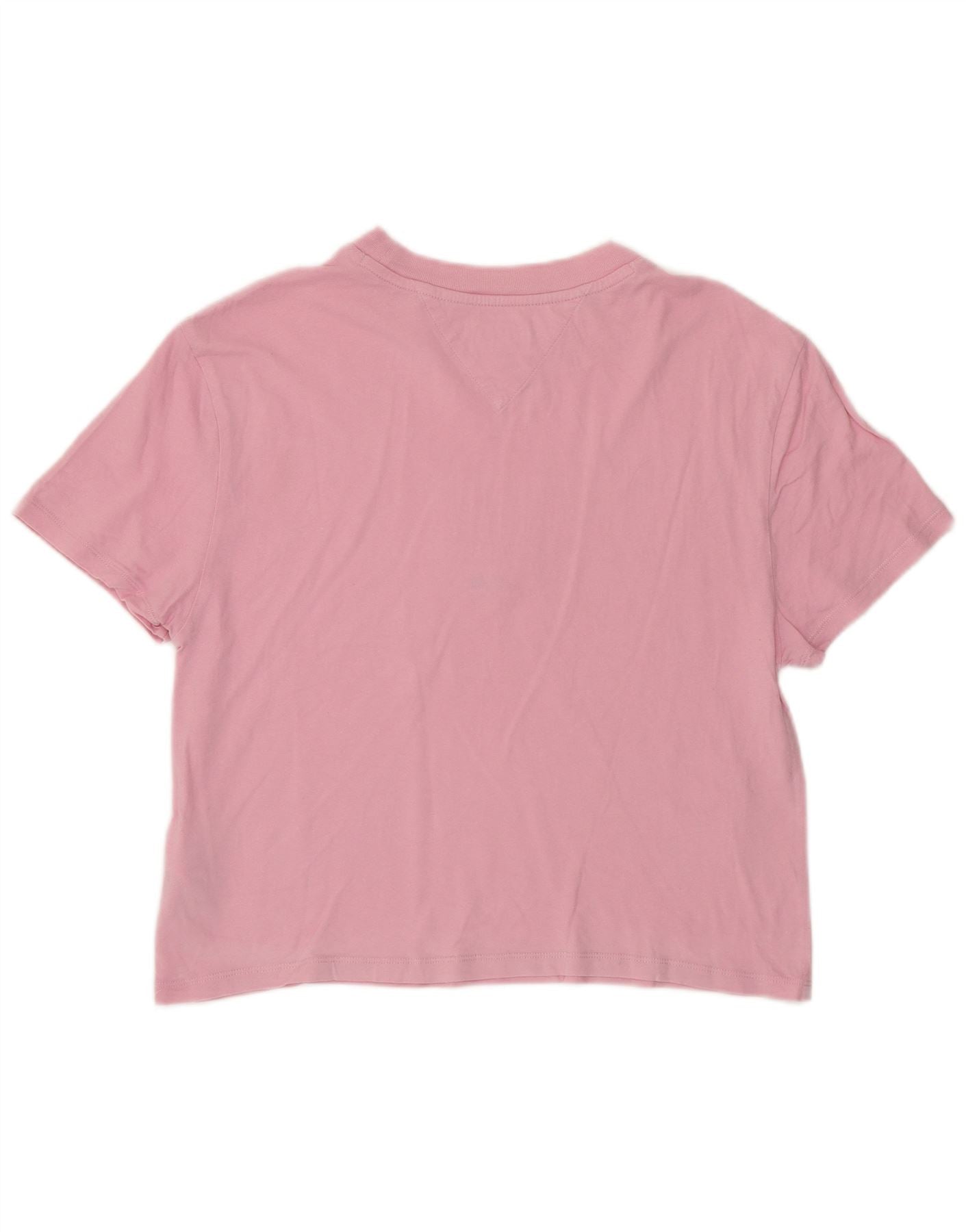 TOMMY HILFIGER Womens Oversized Crop Graphic T-Shirt Top UK 6 XS Pink