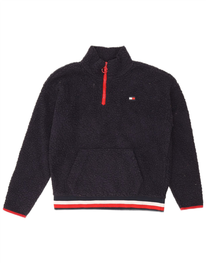 TOMMY HILFIGER Womens Oversized Fleece Jumper UK 10 Small Navy Blue