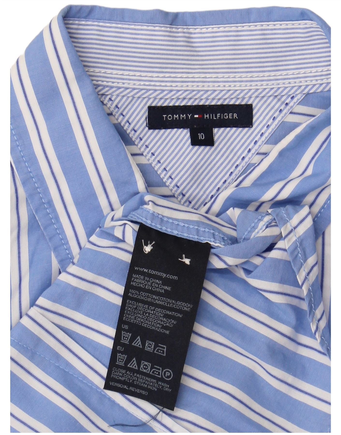 TOMMY HILFIGER Женская рубашка с оборками спереди, США 10, хлопок в большую синюю полоску