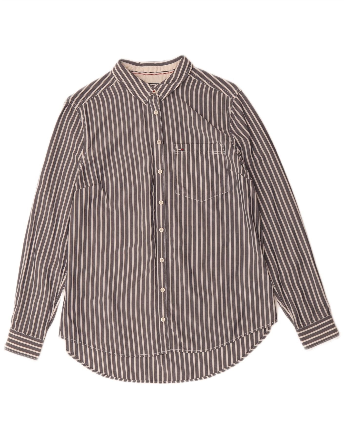 Женская рубашка Tommy Hilfiger UK 14, хлопковая полоска среднего серого цвета