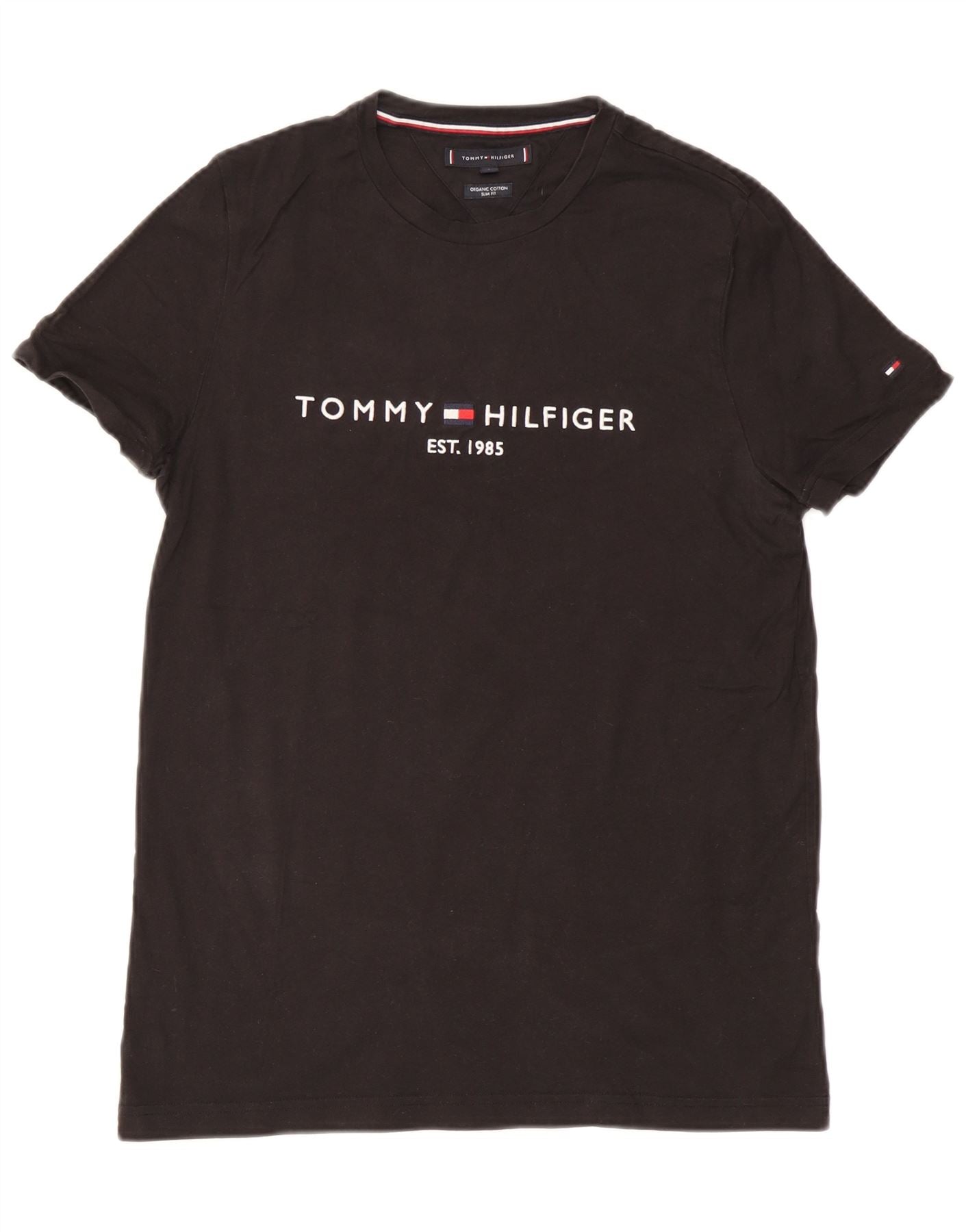 TOMMY HILFIGER Womens Slim Fit Graphic T-Shirt Top UK 14 Large Black