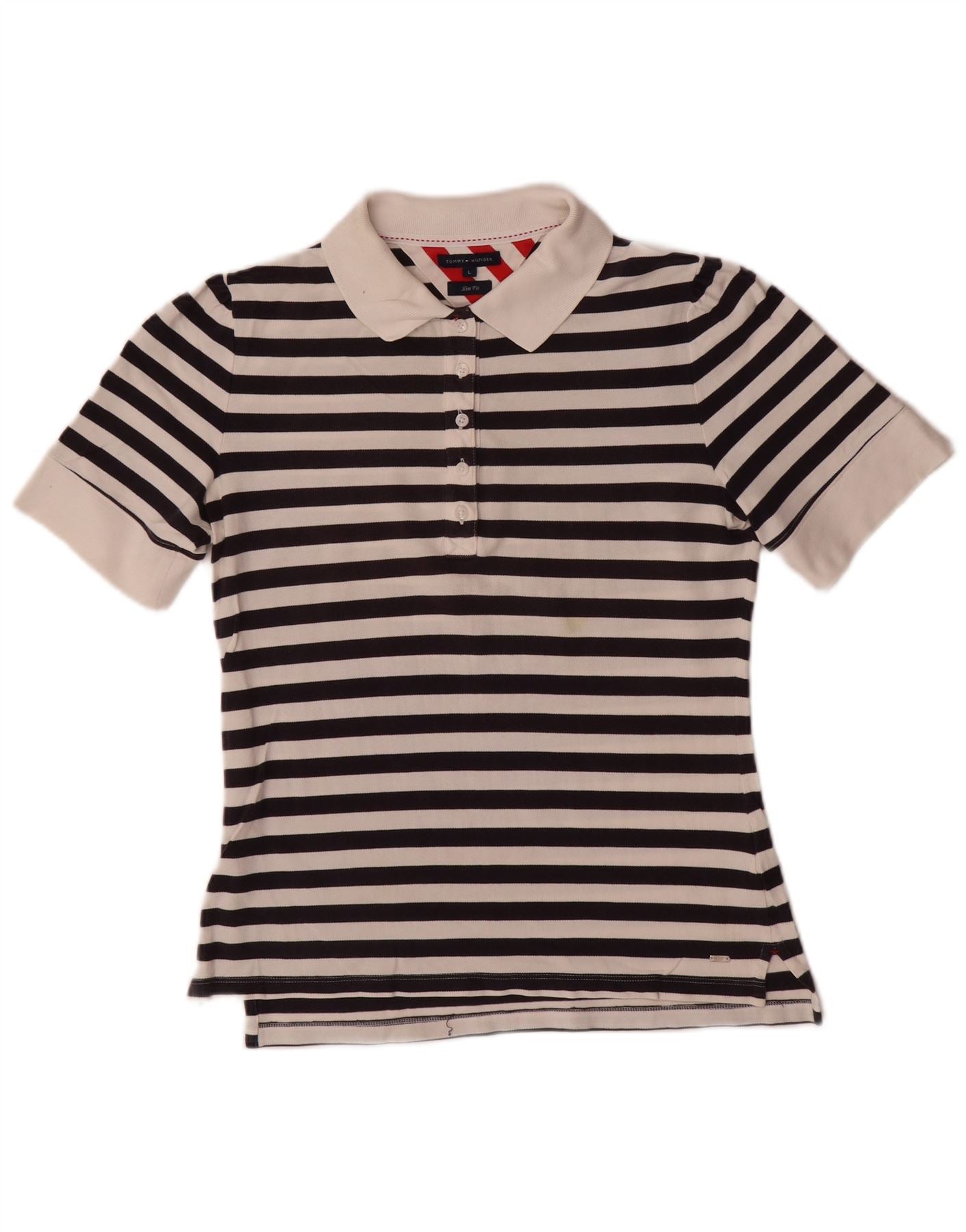 TOMMY HILFIGER Женская рубашка-поло приталенного кроя UK 14, хлопок в большую черную полоску