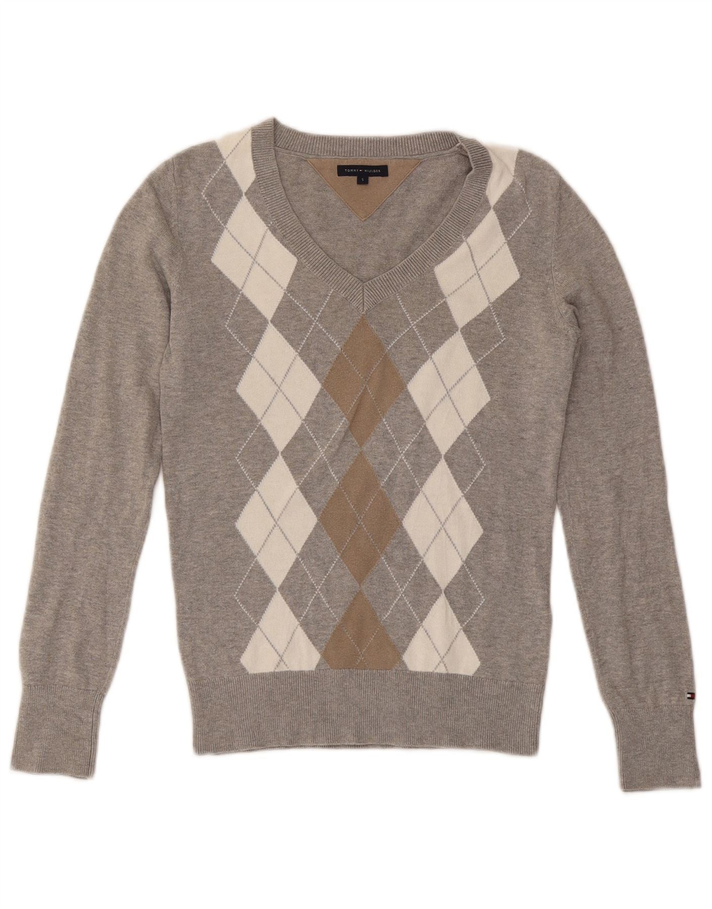 TOMMY HILFIGER Womens V-Neck Jumper Sweater UK 10 Small Grey