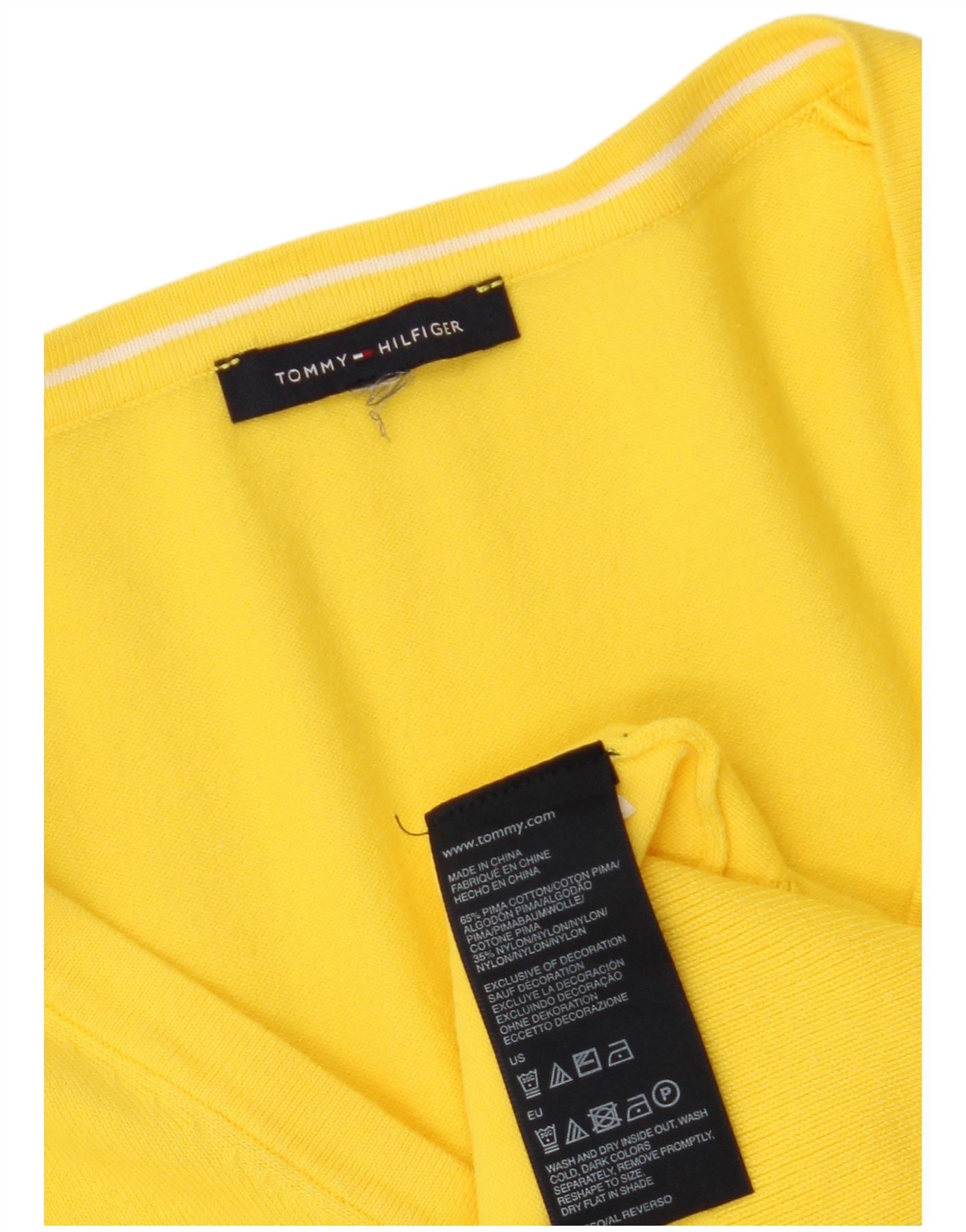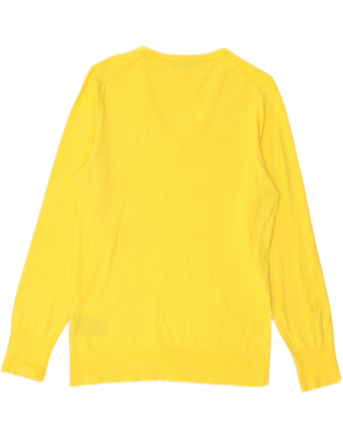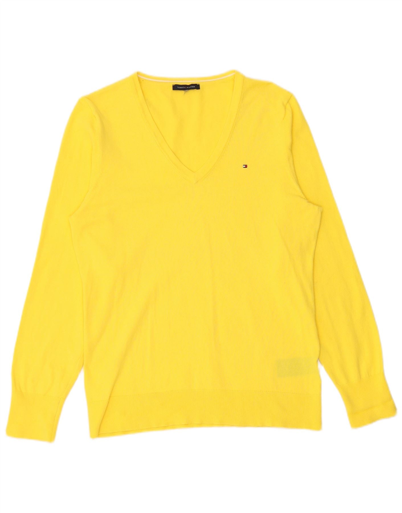 TOMMY HILFIGER Womens V-Neck Jumper Sweater UK 16 Large Yellow Cotton