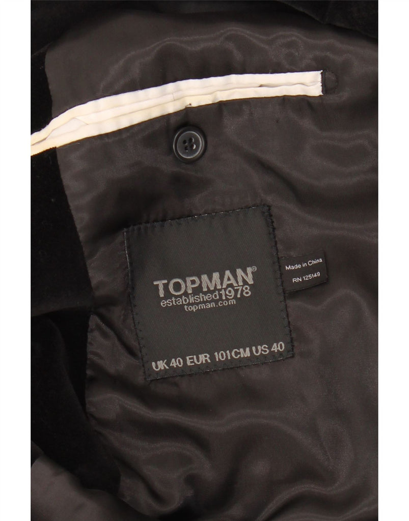 TOPMAN Mens 2 Button Blazer Jacket UK 40 Large Black Polyester