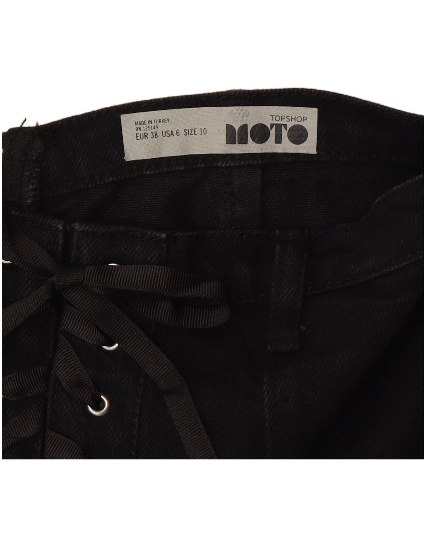 - Описание ИИ: Эта женская мини-юбка Moto изготовлена из черного денима, создающего прочный, но стильный вид. Модель имеет классический А-силуэт и стандартную посадку. Передняя часть украшена характерной шнуровкой, придающей нотку ретро. Сзади расположена незаметная застежка-молния. Для удобства предусмотрены практичные карманы, сочетающие стиль и повседневную практичность.