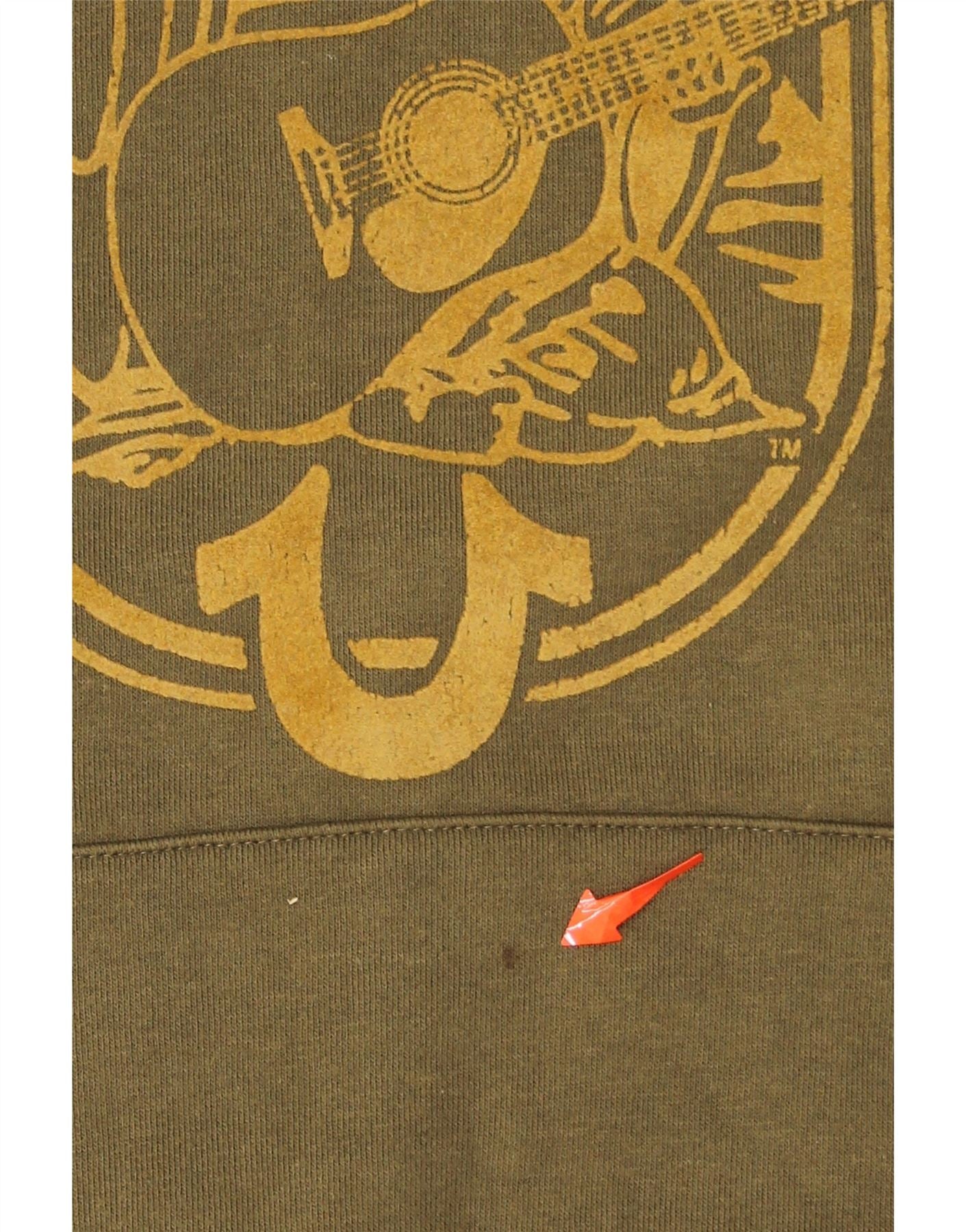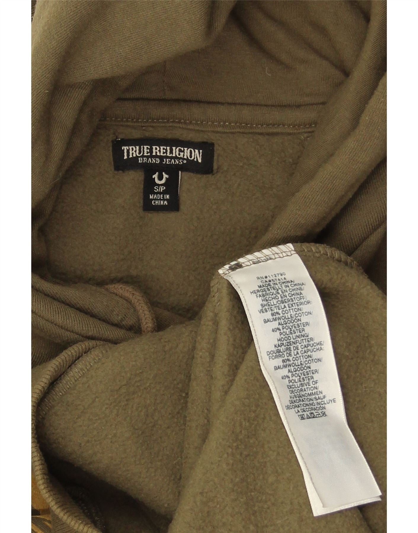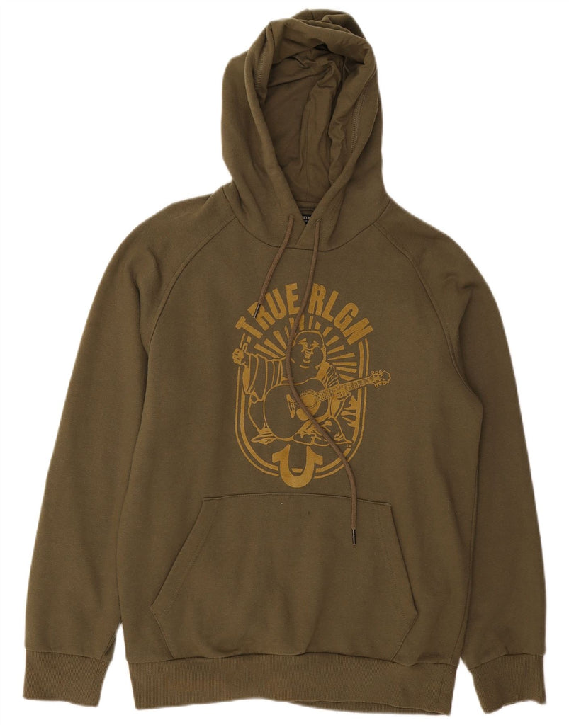 TRUE RELIGION Mens Graphic Hoodie Jumper Small Khaki Cotton
