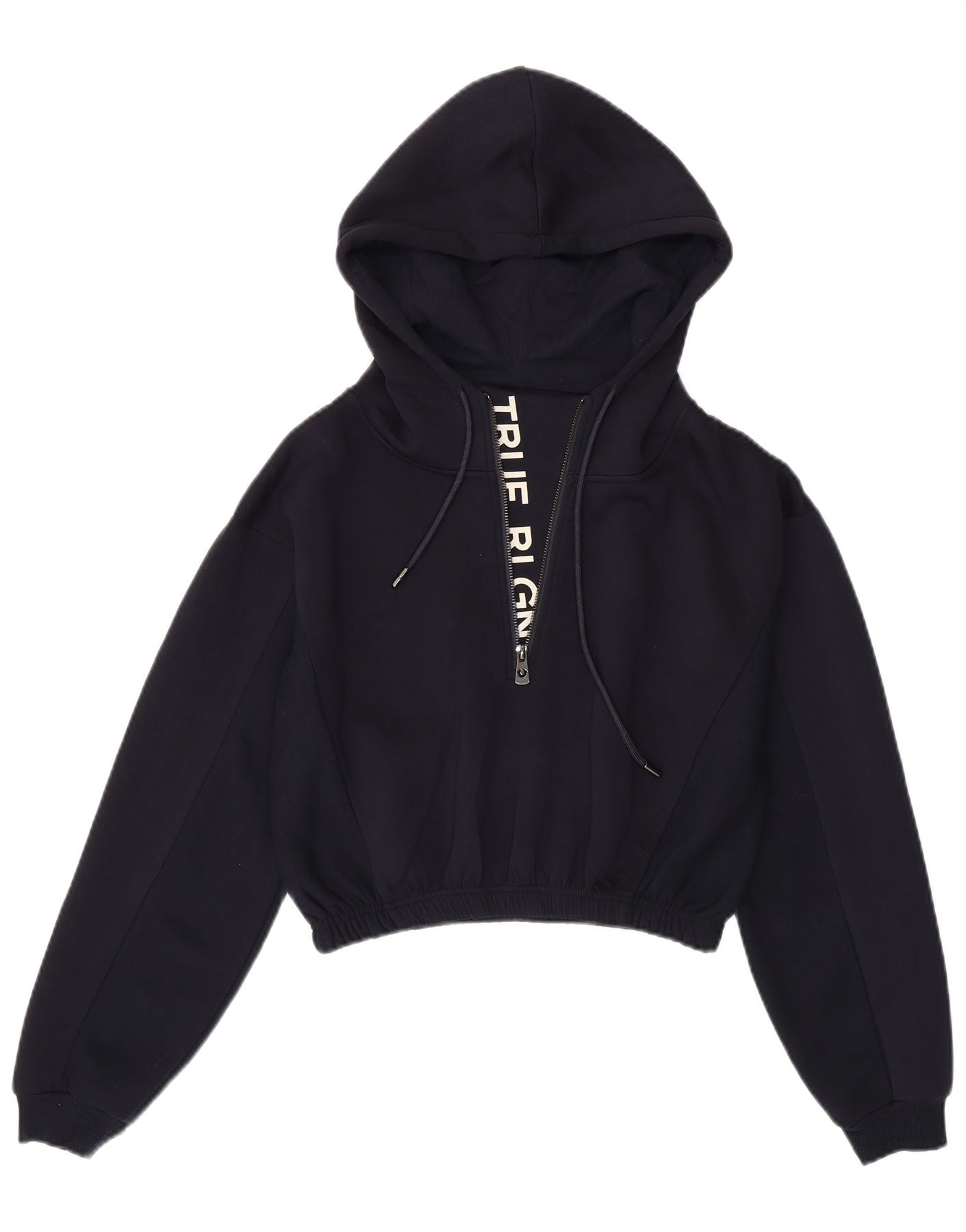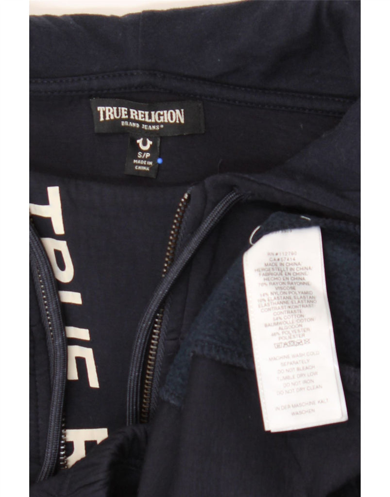 TRUE RELIGION Womens Crop Zip Neck Hoodie Jumper UK 10 Small Navy Blue