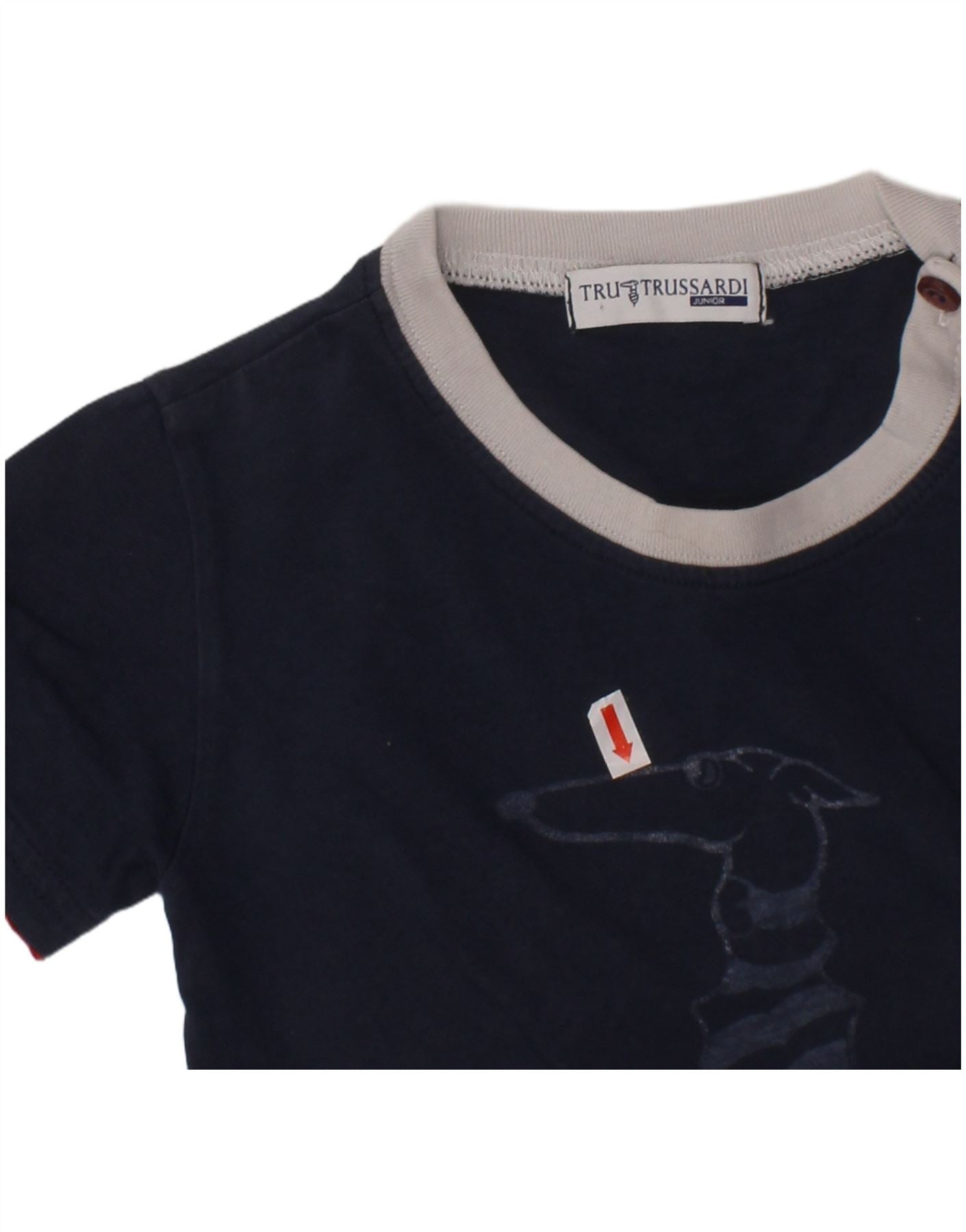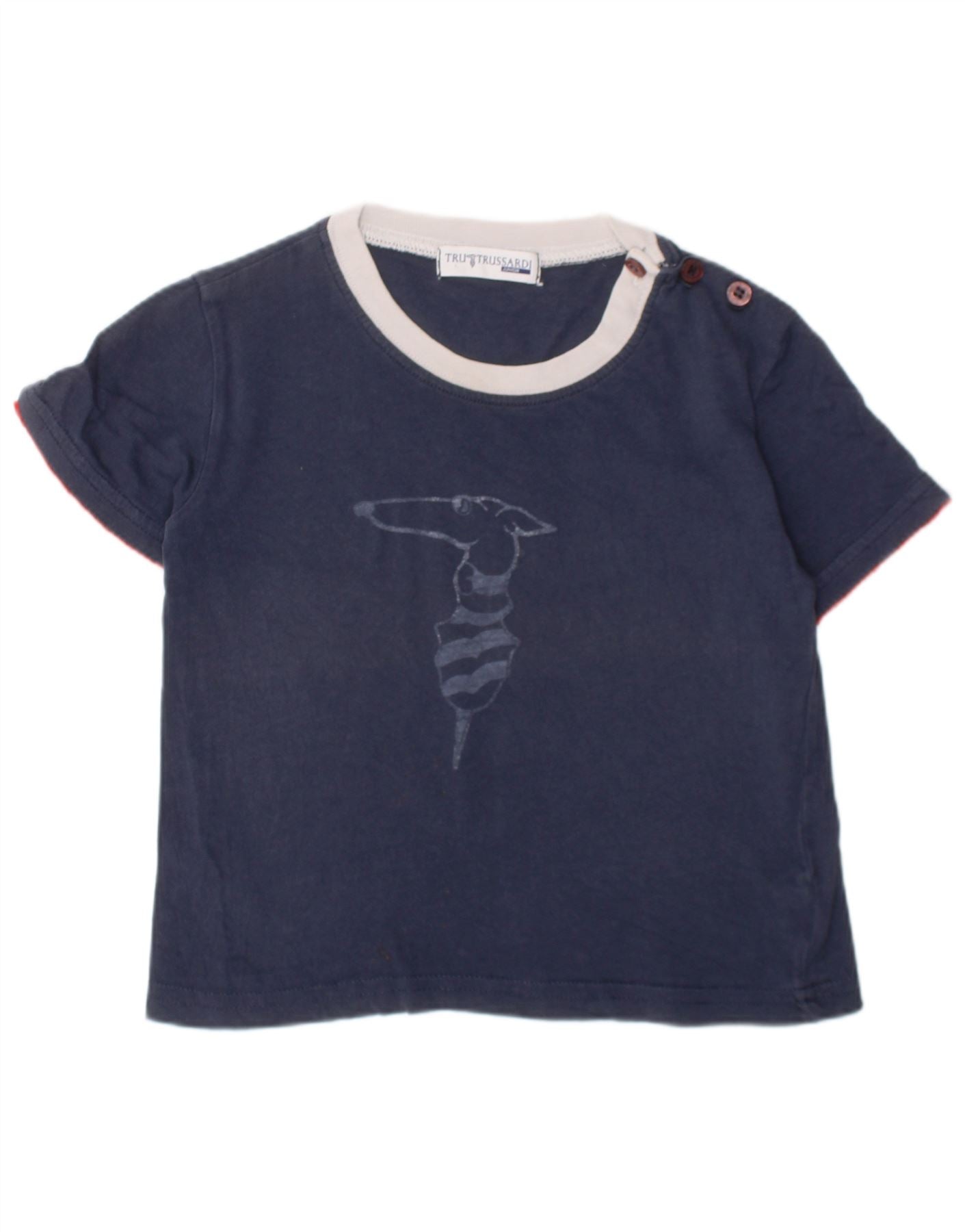 TRUSSARDI Boys Graphic T-Shirt Top 2-3 Years Navy Blue Cotton