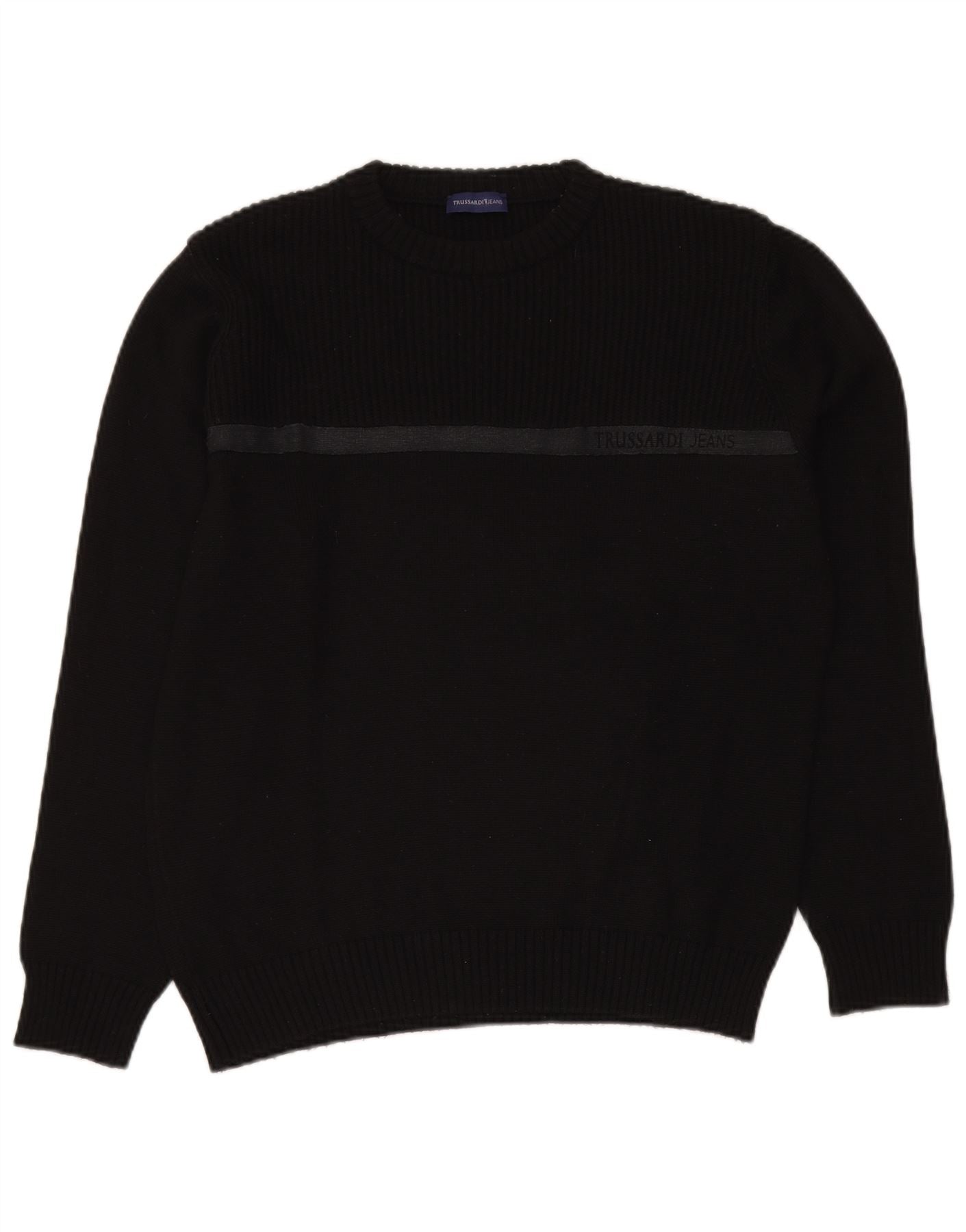 TRUSSARDI JEANS Мужской джемпер с круглым вырезом, средний черный шерстяной свитер