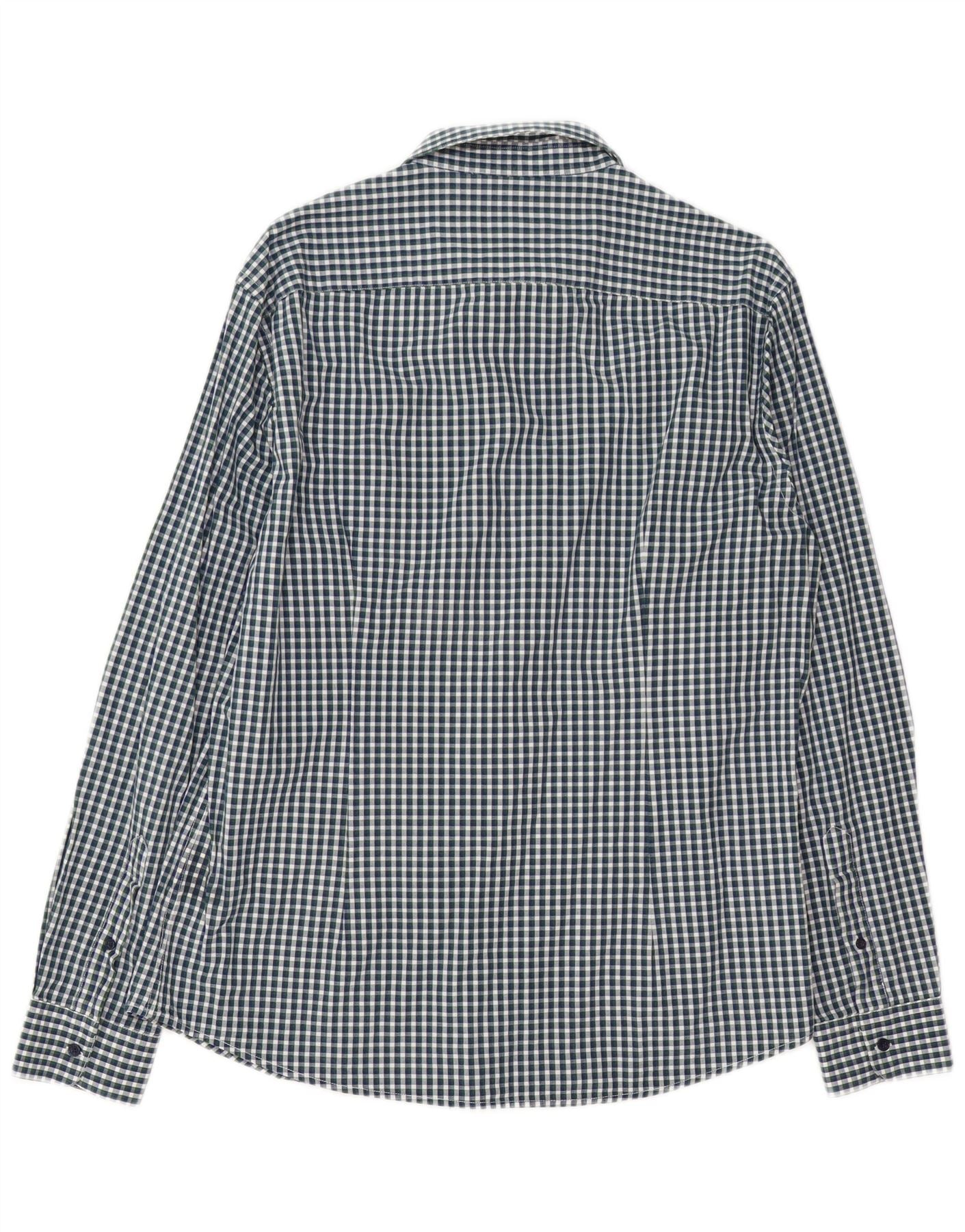 - Описание ИИ: Мужская рубашка Trussardi Jeans изготовлена из тканого материала с четкой текстурой. Он имеет классический клетчатый узор в зеленом, темно-синем и белом цветах. Вырез с воротником и застежка на пуговицы спереди создают неподвластную времени структуру. Длинные рукава заканчиваются манжетами на пуговицах. Регулярная посадка обеспечивает удобство ношения и классический силуэт. Эта рубашка предлагает универсальный стиль для различных случаев.