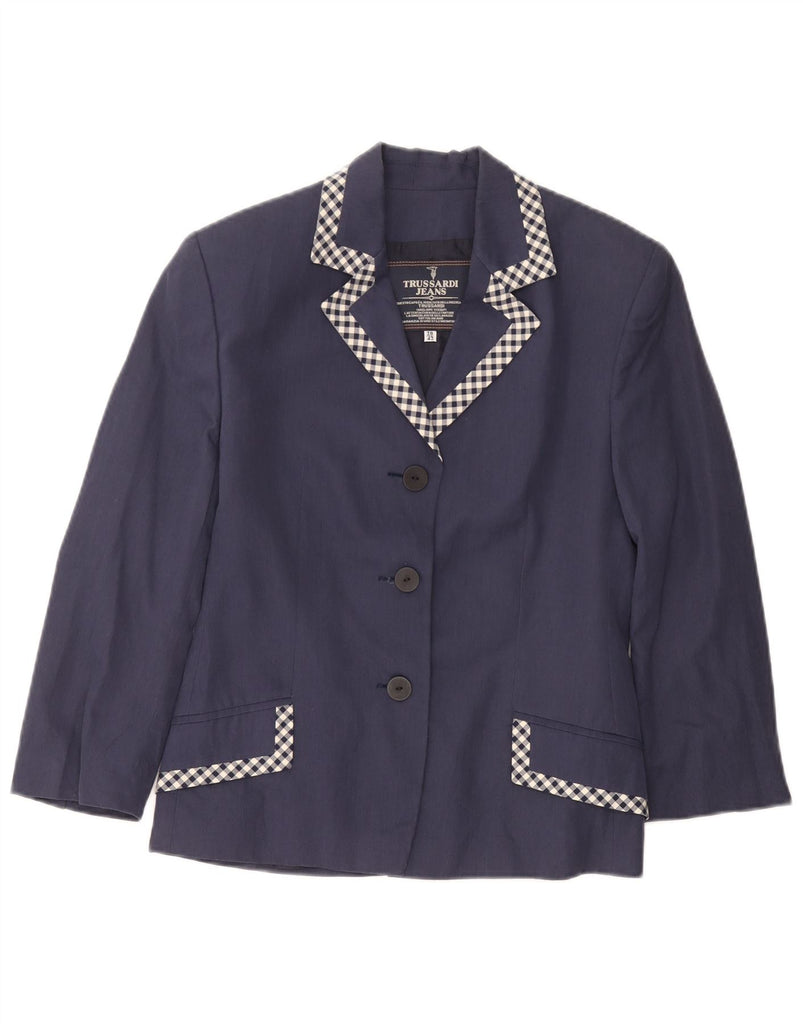 TRUSSARDI JEANS Womens 3 Button Blazer Jacket IT 42 Medium Navy Blue