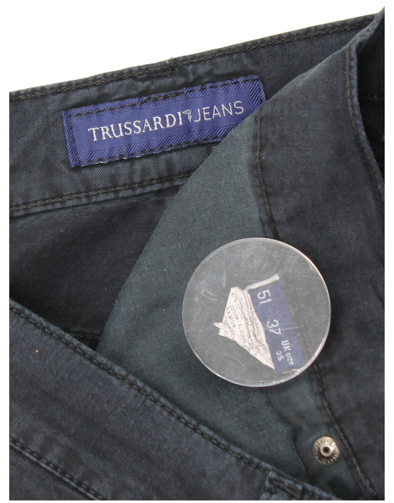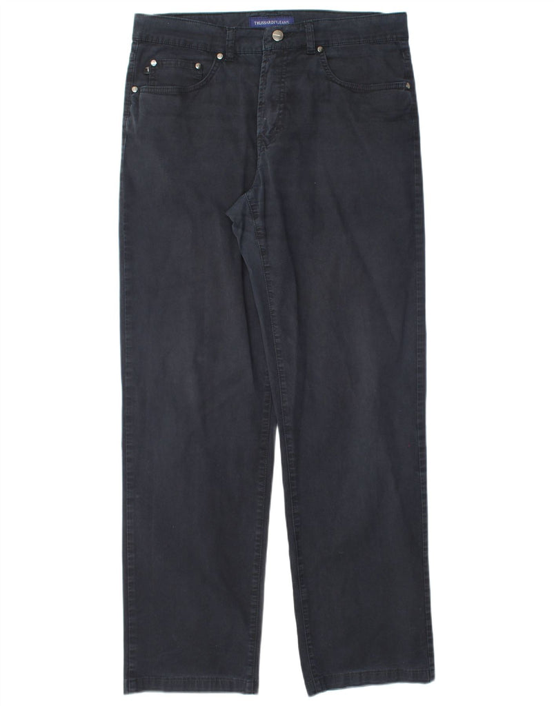 TRUSSARDI Mens Straight Casual Trousers W35 L32 Navy Blue Cotton