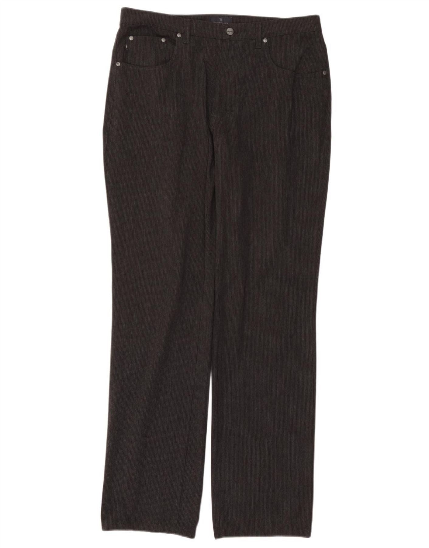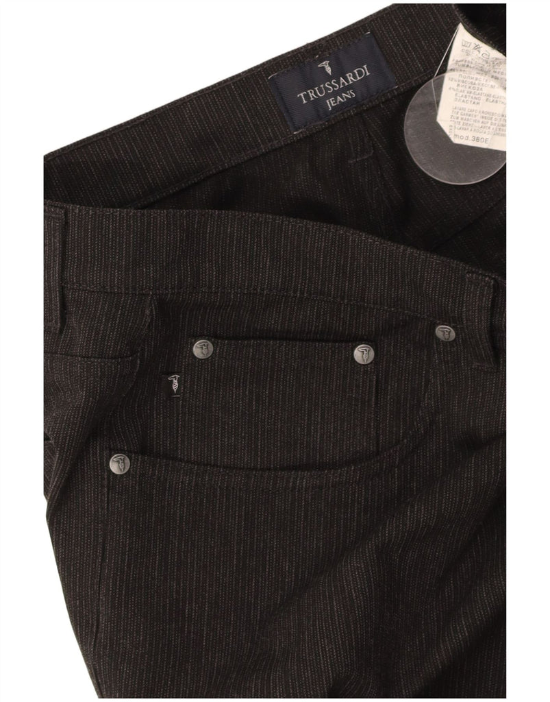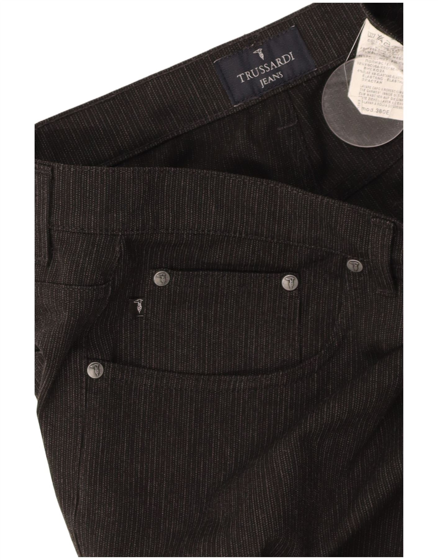 TRUSSARDI Мужские прямые повседневные брюки W36 L36, черные полиэстер в тонкую полоску
