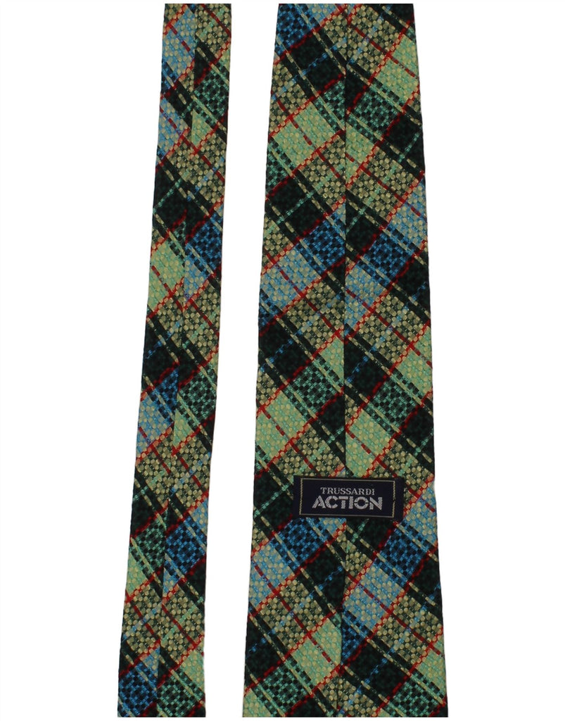 TRUSSARDI Mens Tie One Size Multicoloured Plaid Silk Classic