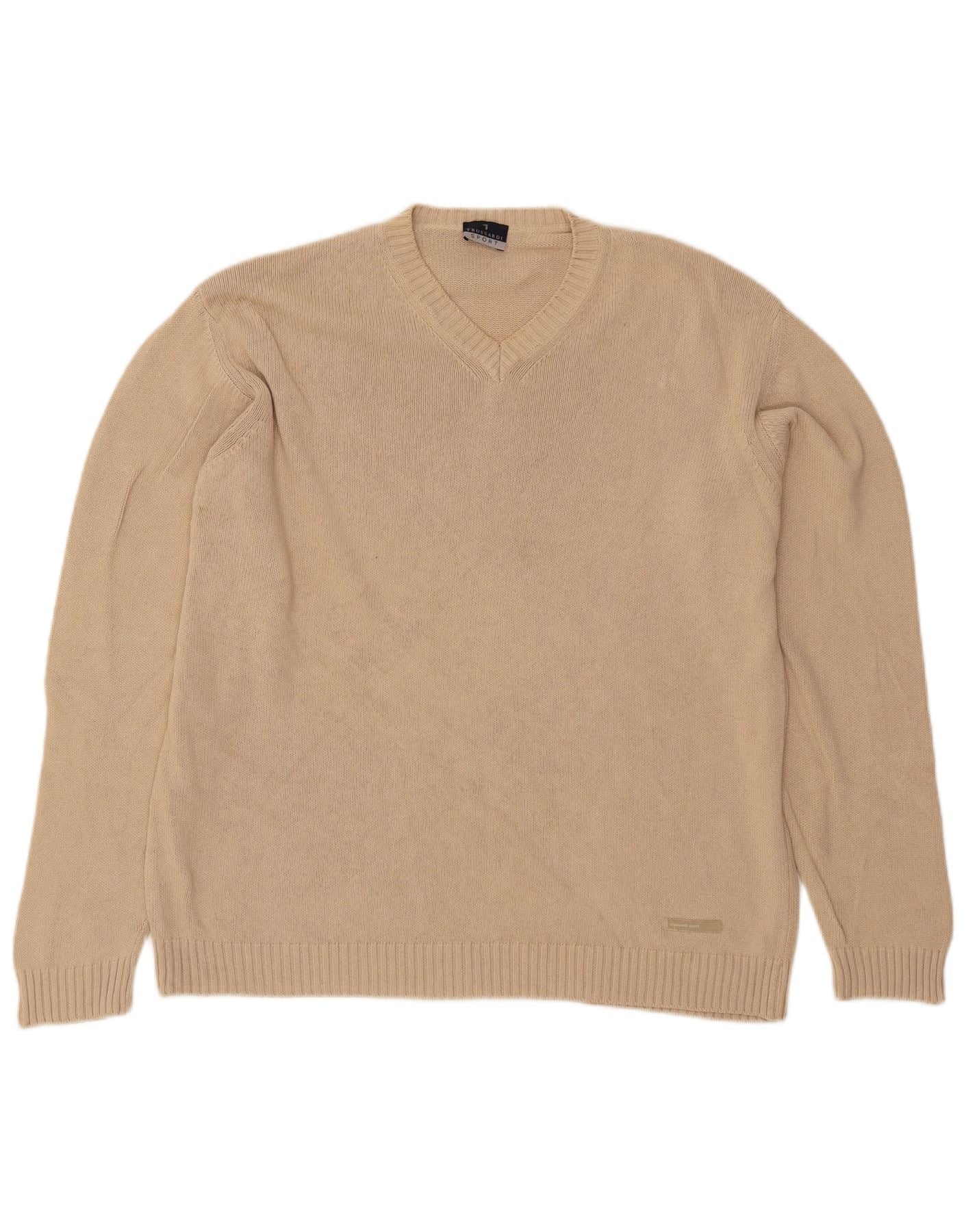 Мужской джемпер Trussardi с v-образным вырезом, большой бежевый, хлопок