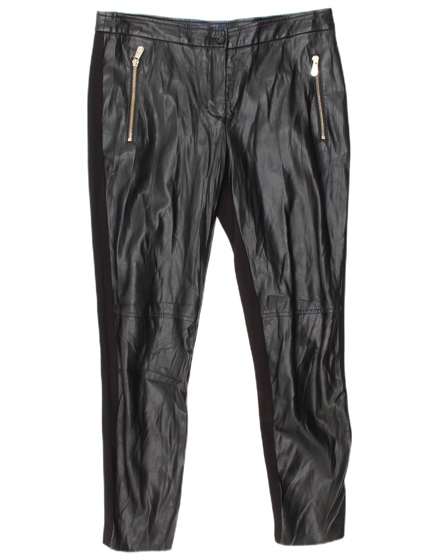 TRUSSARDI Womens Skinny Faux Leather Trousers IT 42 Medium W30 L25 Black
