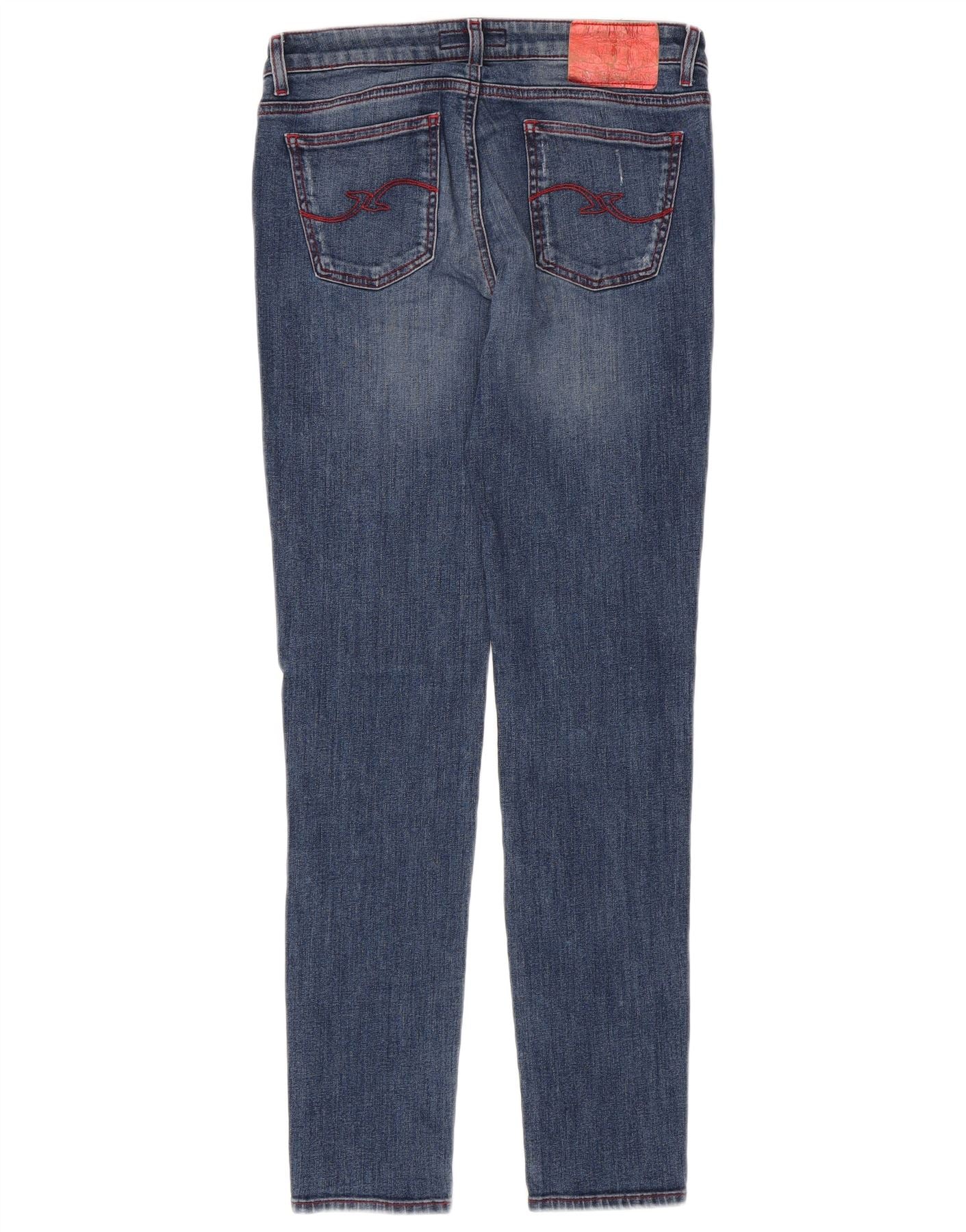 - Описание ИИ: Женские узкие джинсы Trussardi Jeans изготовлены из синего денима классической потертости. Они имеют среднюю посадку на талии и застегиваются на пуговицу и молнию. Узкие ножки аккуратно сужаются, создавая современный силуэт. Красная контрастная строчка добавляет отличительных деталей. Классический фасон с пятью карманами и фирменная пуговица завершают дизайн. Эта пара сочетает в себе комфорт и вневременной стиль.