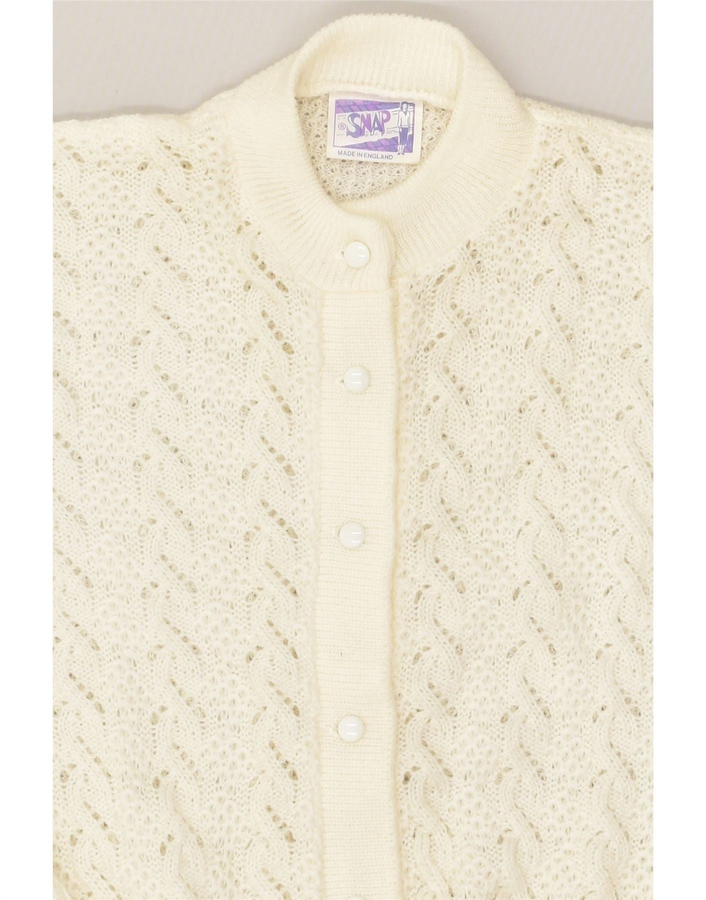 ВИНТАЖНЫЙ женский кардиган-свитер UK 2 2XS Белый акрил