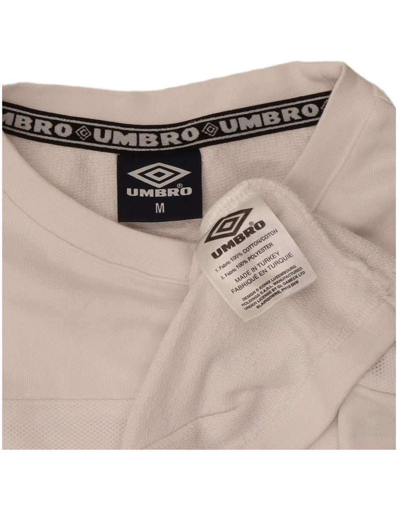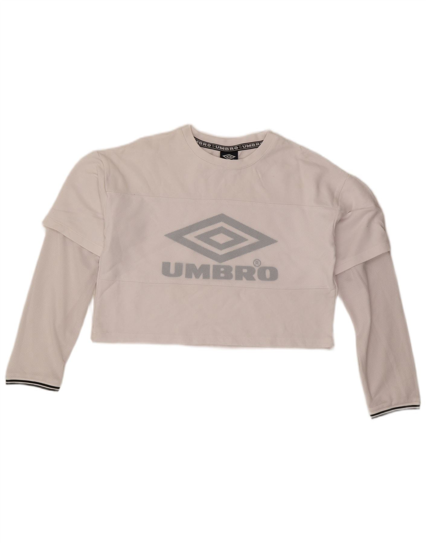 UMBRO Womens Crop Graphic Top Long Sleeve UK 14 Medium Off White Cotton
