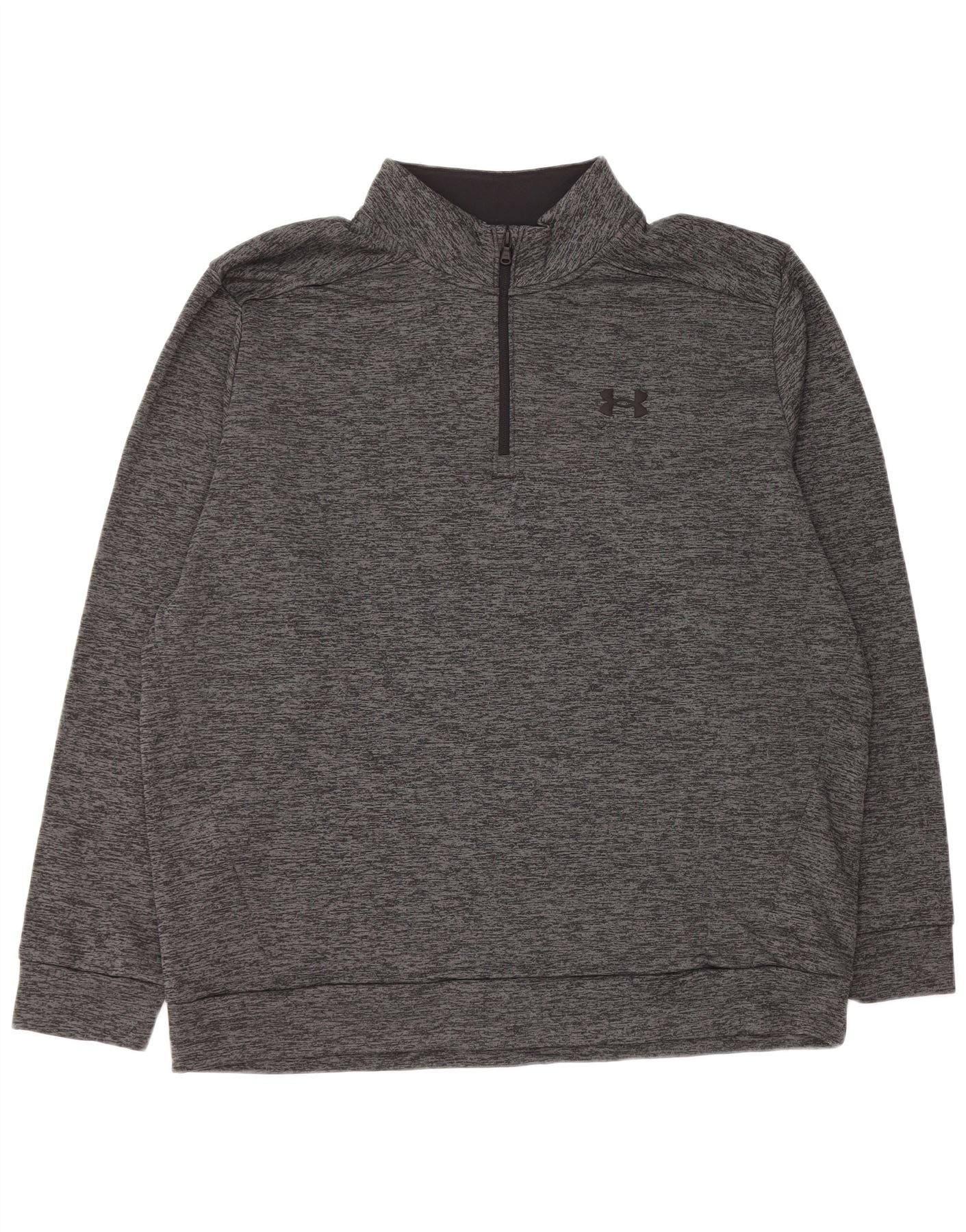 UNDER ARMOUR Mens Zip Neck Sweatshirt Jumper 2XL Grey Flecked Polyester