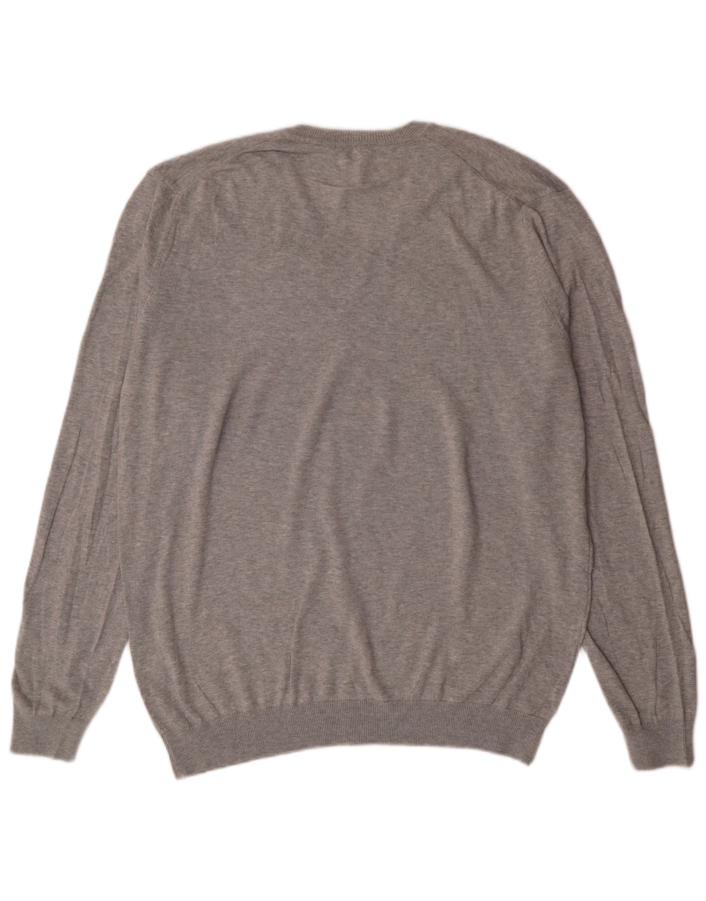 Мужской джемпер с v-образным вырезом United Colors of Benetton XL, серый, хлопковый, классический