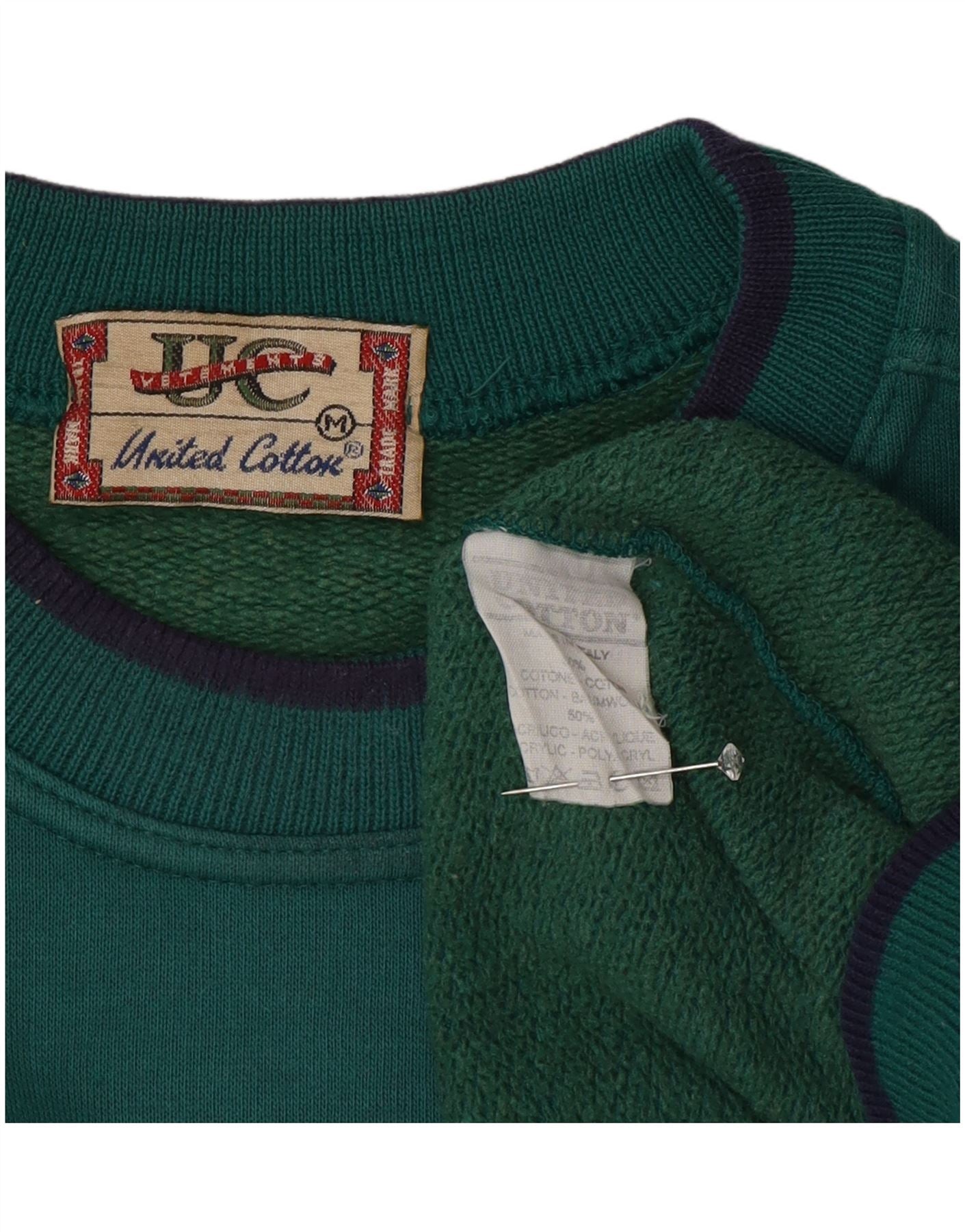 UNITED COTTON Mens Loose Fit Sweatshirt Jumper Medium Green Cotton