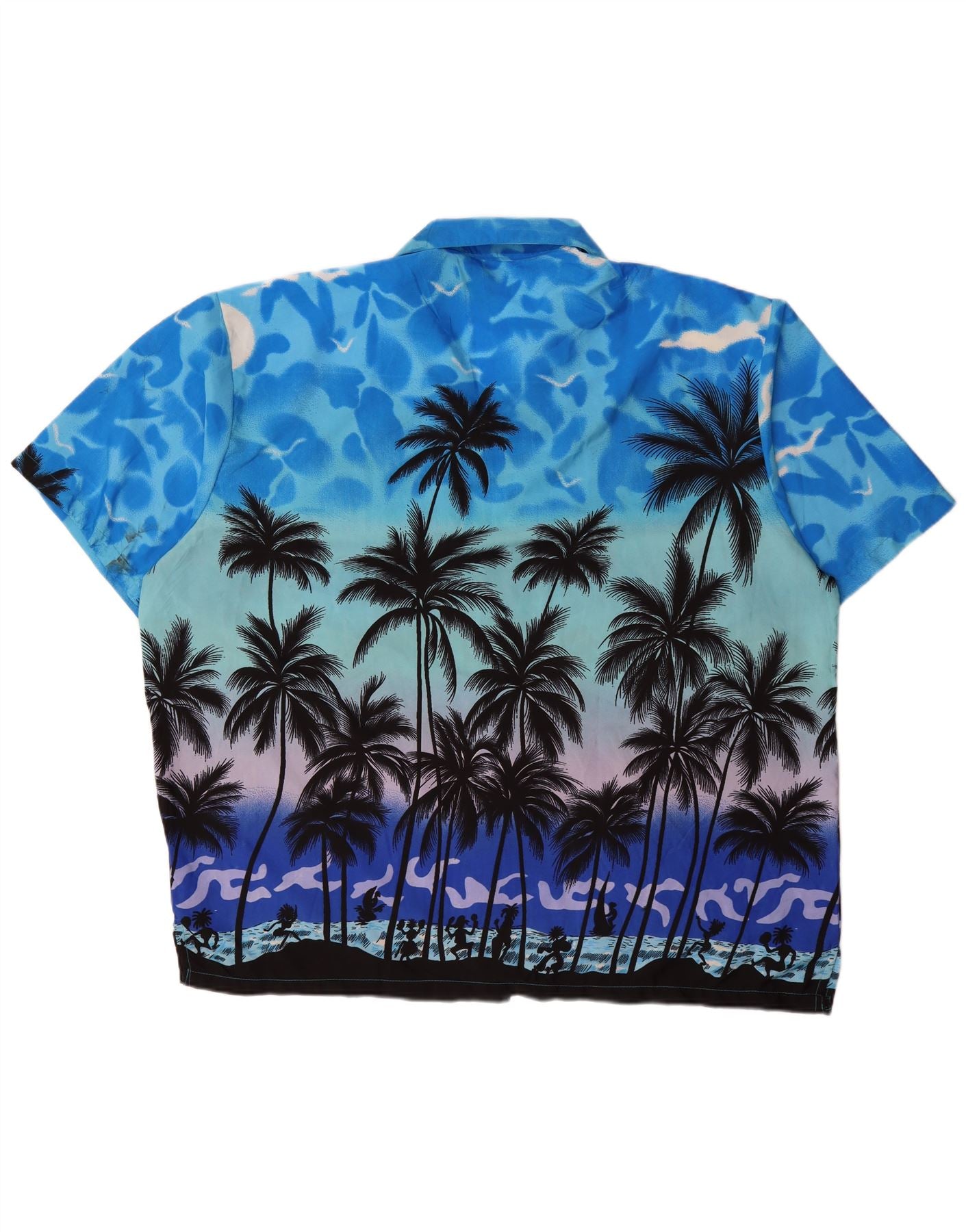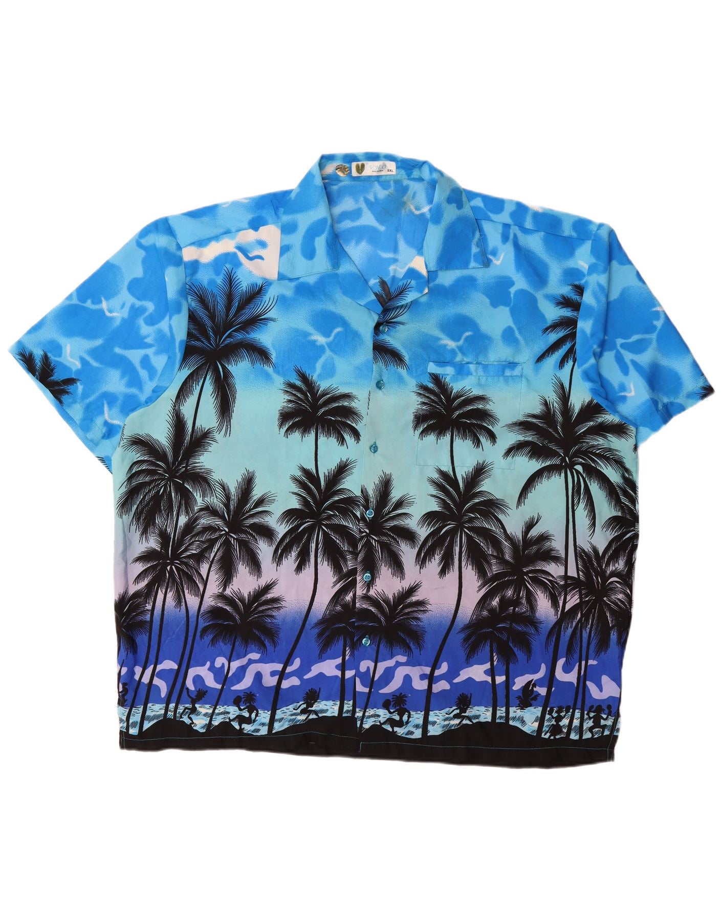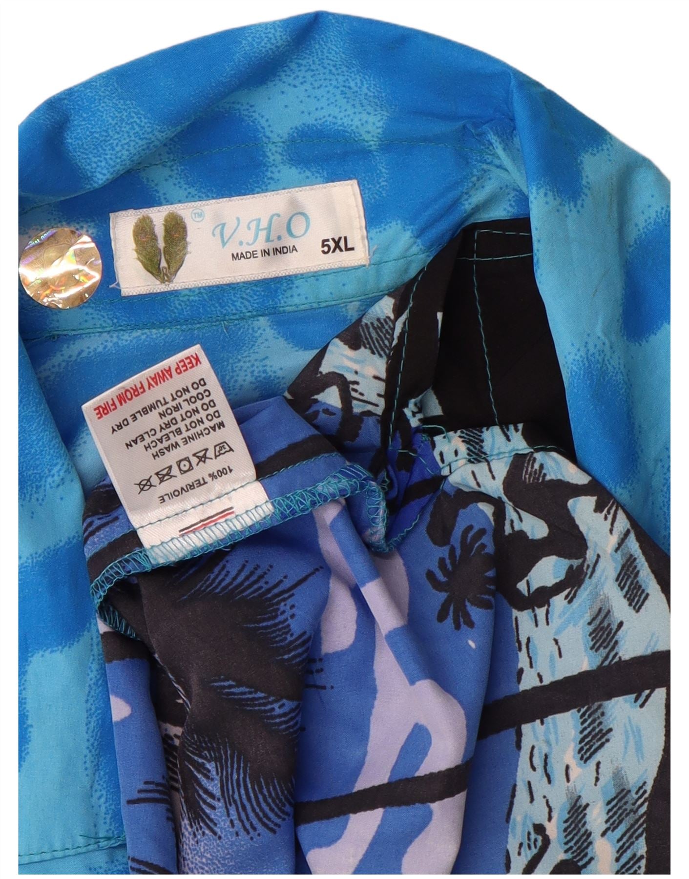V.H.O Mens Hawaiian Short Sleeve Shirt 5XL Blue Floral Terivoile