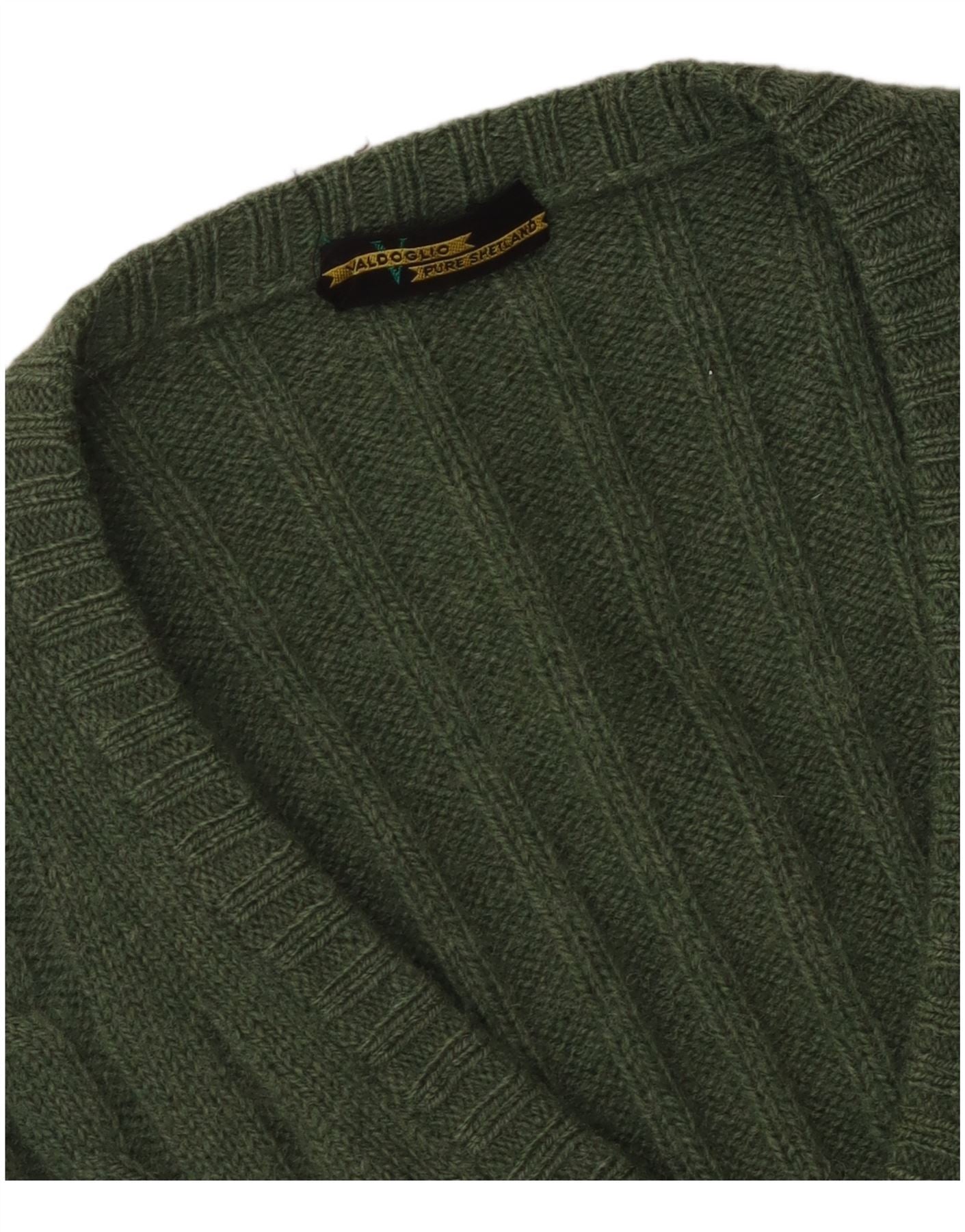 - Описание ИИ: Этот винтажный женский джемпер с V-образным вырезом выполнен из роскошного трикотажа из чистой шетландской шерсти насыщенного зеленого оттенка. Имеет классический V-образный вырез и длинные рукава. Характерный узор косичек проходит вертикально, добавляя текстуру и визуальный интерес. Регулярная посадка обеспечивает комфортное ношение. Этот стиль пуловера предлагает неподвластную времени привлекательность и классическую изысканность.