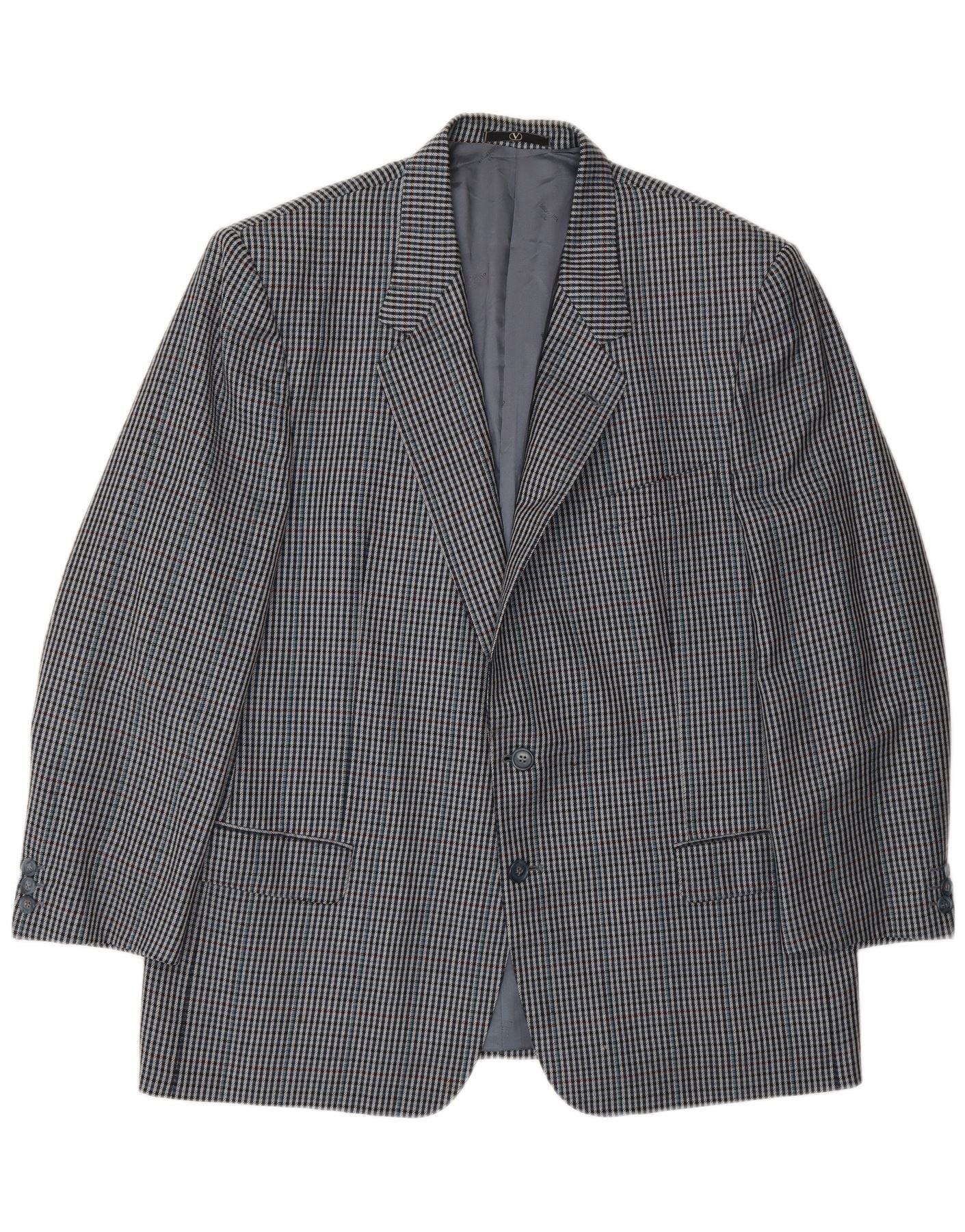 VALENTINO Mens Uomo 2 Button Blazer Jacket IT 54 2XL Navy Blue Gingham
