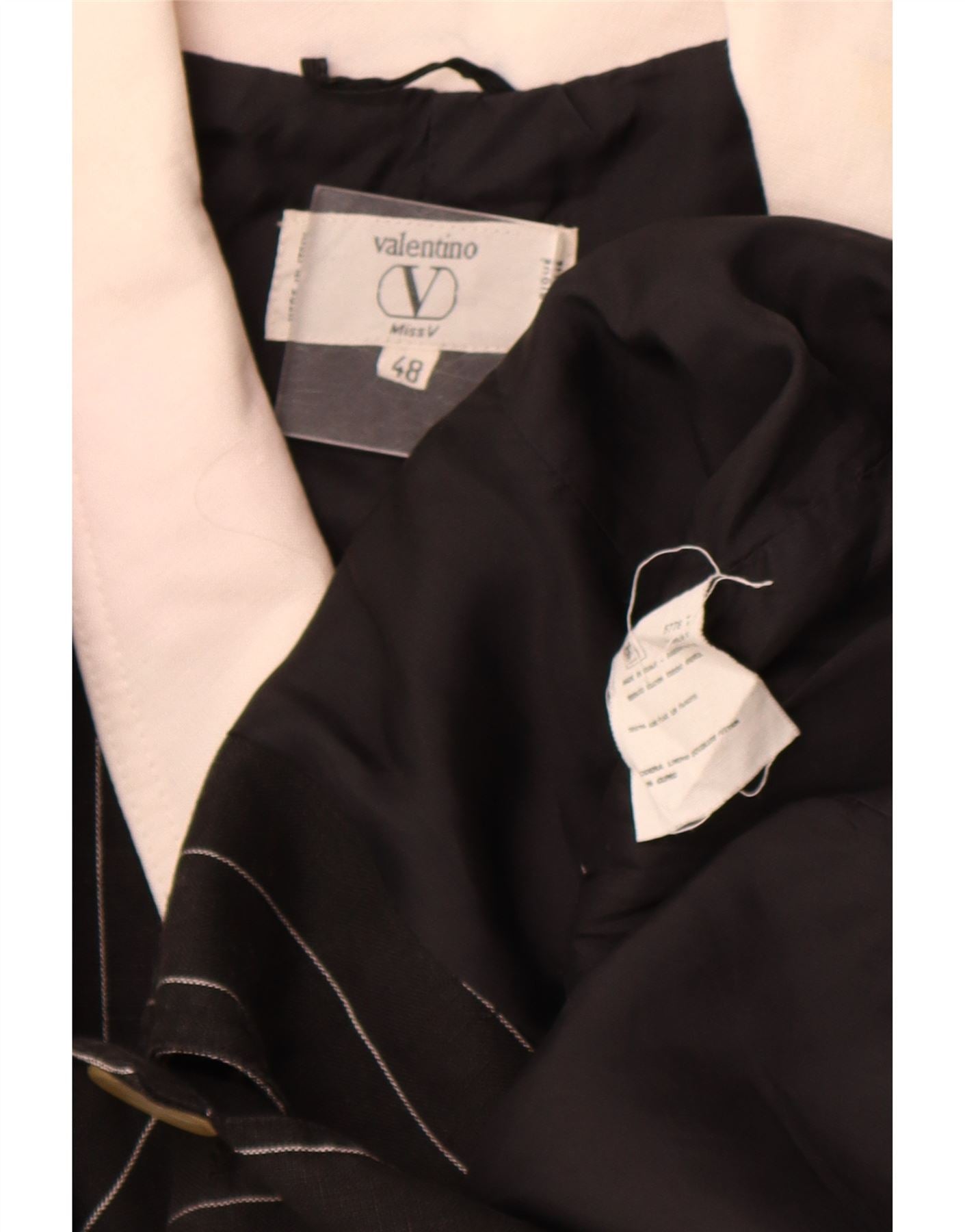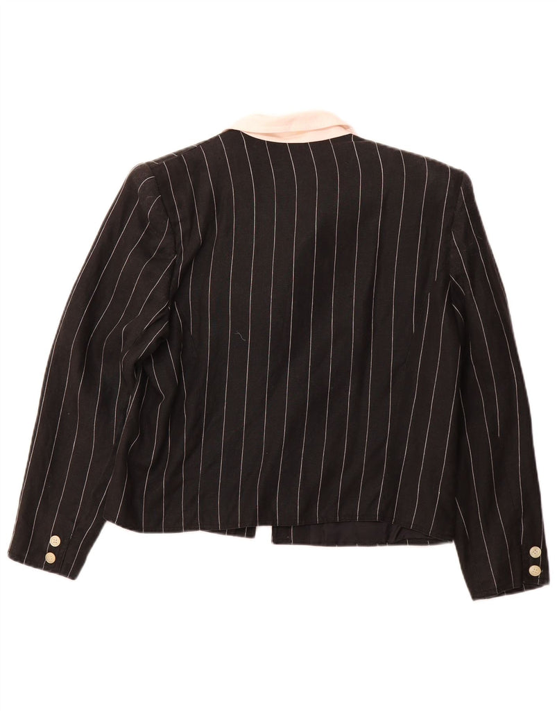 VALENTINO Womens Crop 3 Button Blazer Jacket IT 48 XL Black Pinstripe