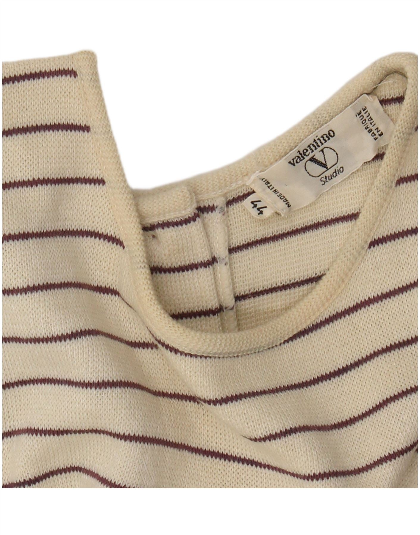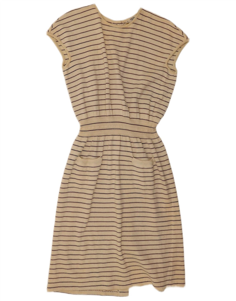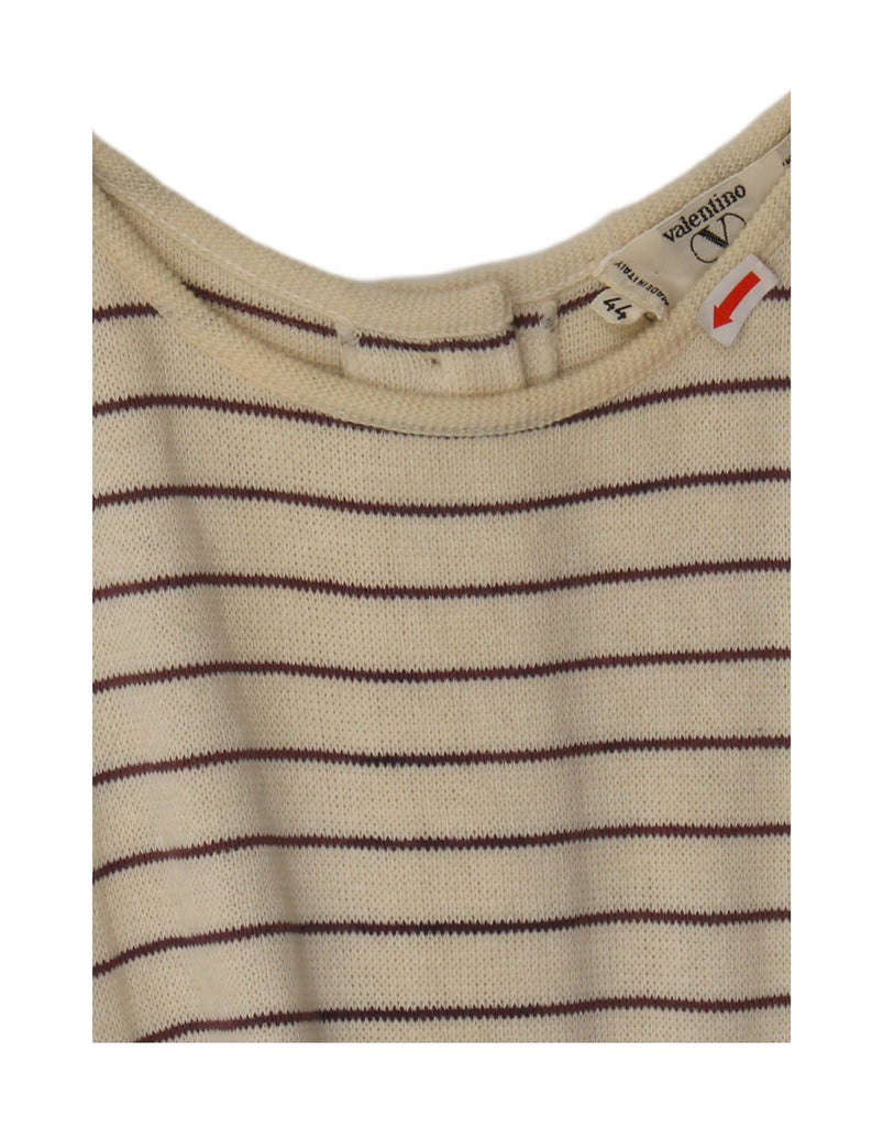 VALENTINO Womens Short Sleeves Jumper Dress IT 44 Medium Off White Striped