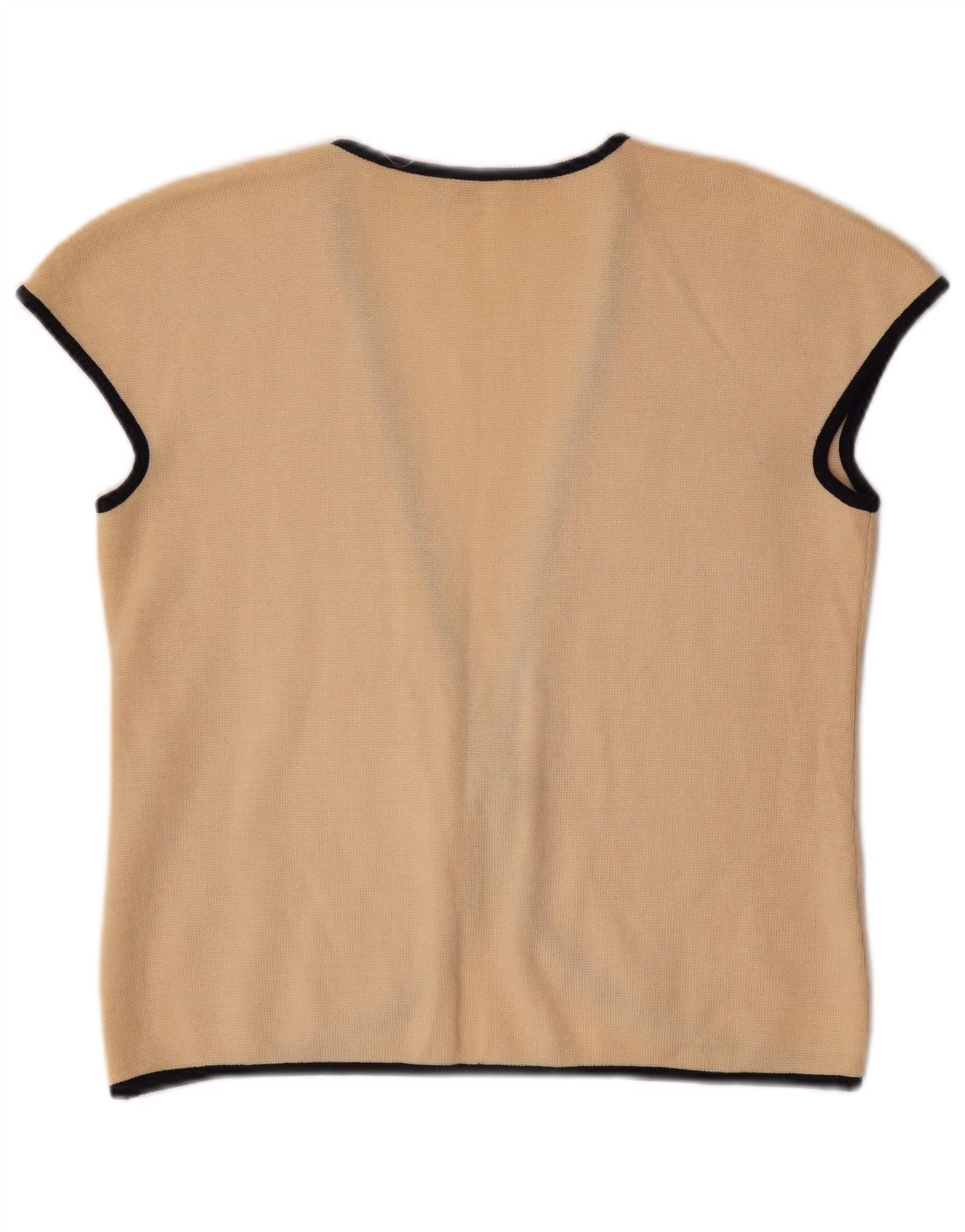 VALENTINO Womens Sleeveless Cardigan Sweater IT 44 Medium Beige Wool