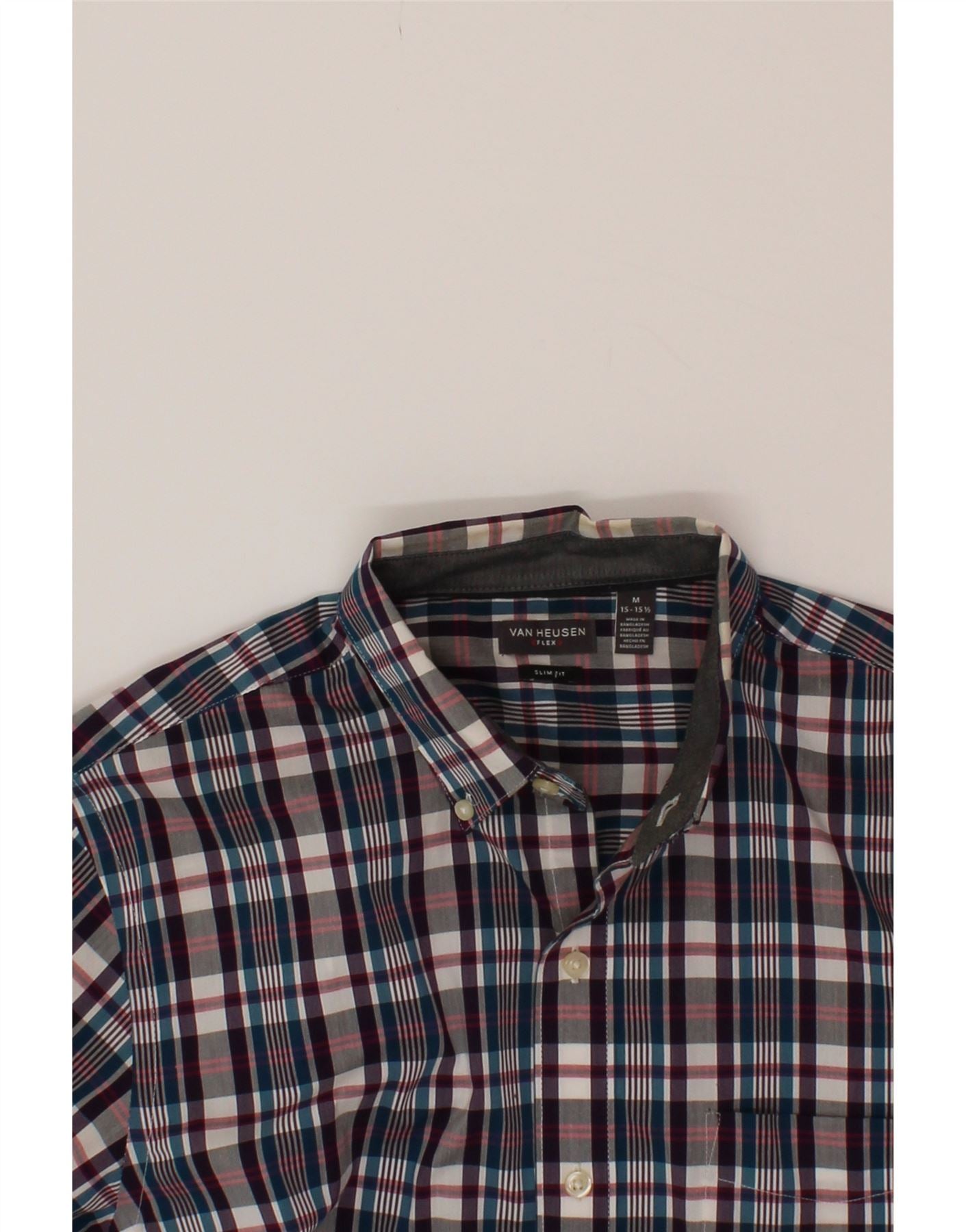 VAN HEUSEN Mens Flex Slim Fit Shirt Size 15 1/2 Medium Burgundy Check