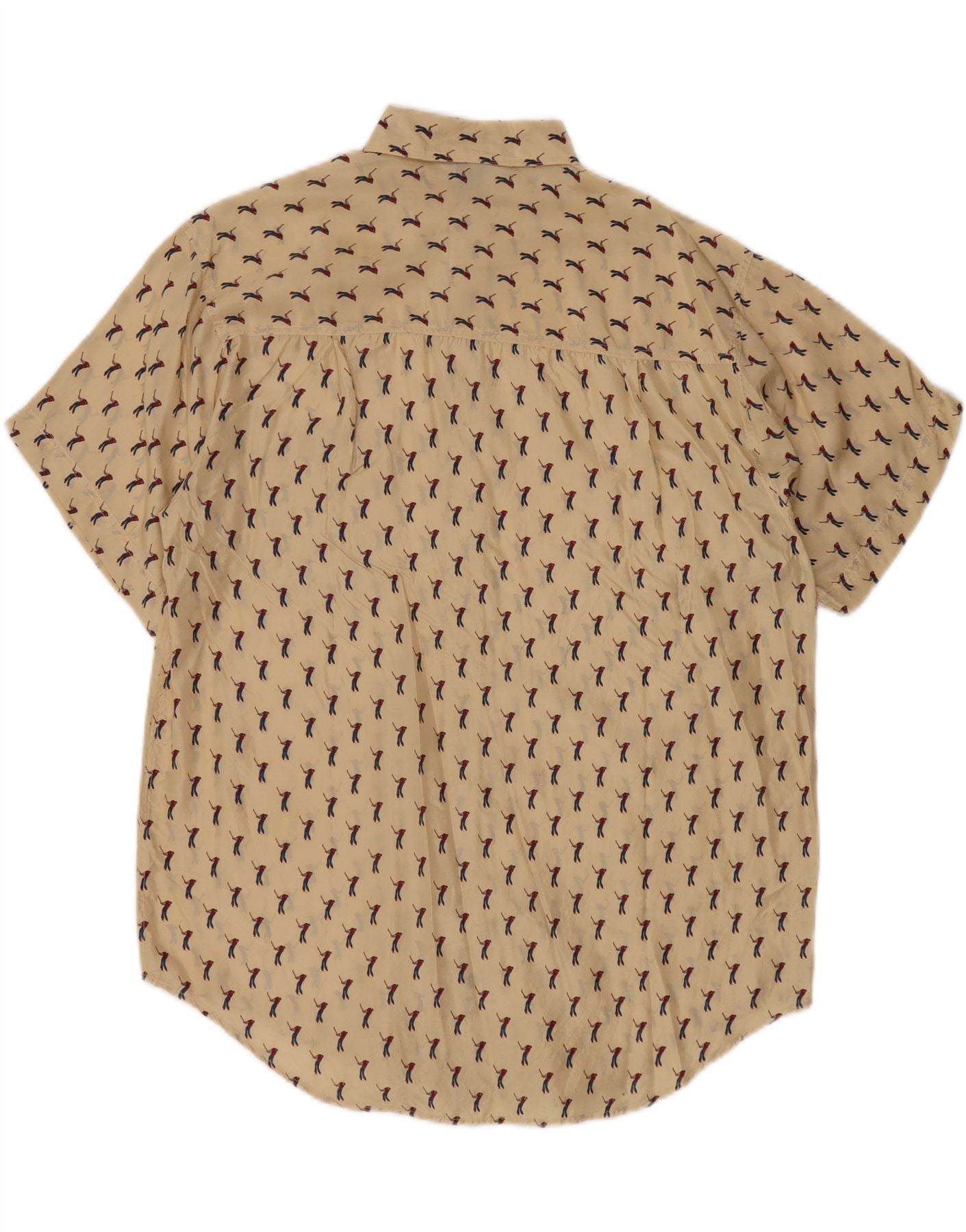 VAN ZON Мужская рубашка для гольфа с абстрактным узором и коротким рукавом, средний бежевый шелк