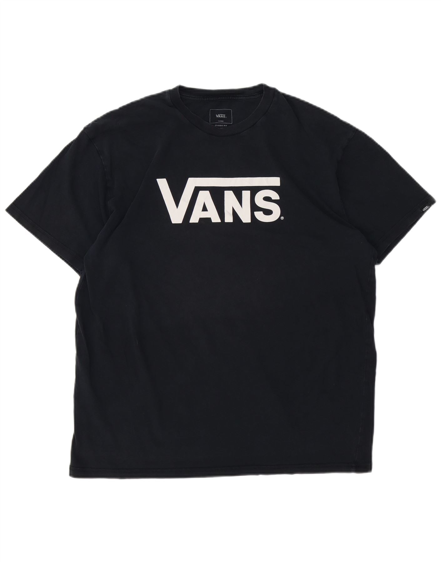 Мужская футболка классического кроя с рисунком VANS, большой темно-синий хлопковый топ